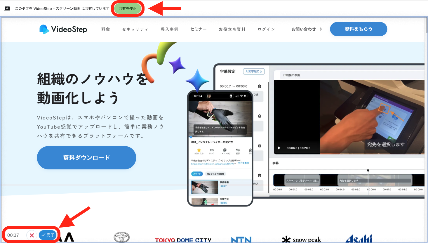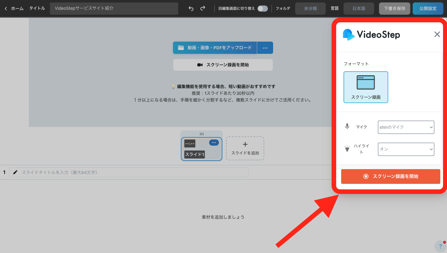 ※ スクリーン録画については、30分以内までの収録が可能です。 30分を超えると、動画がアップロードされないので、ご注意ください。