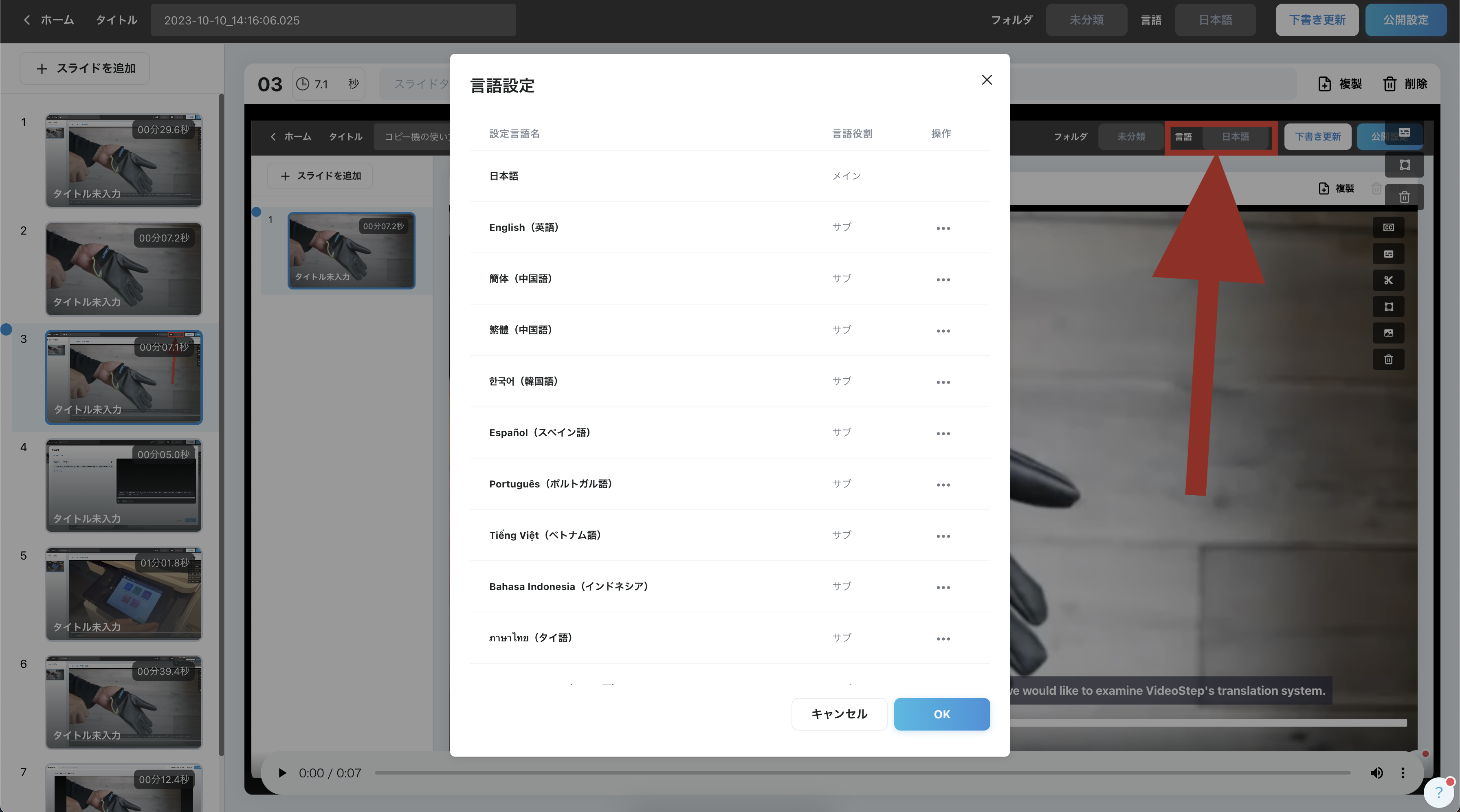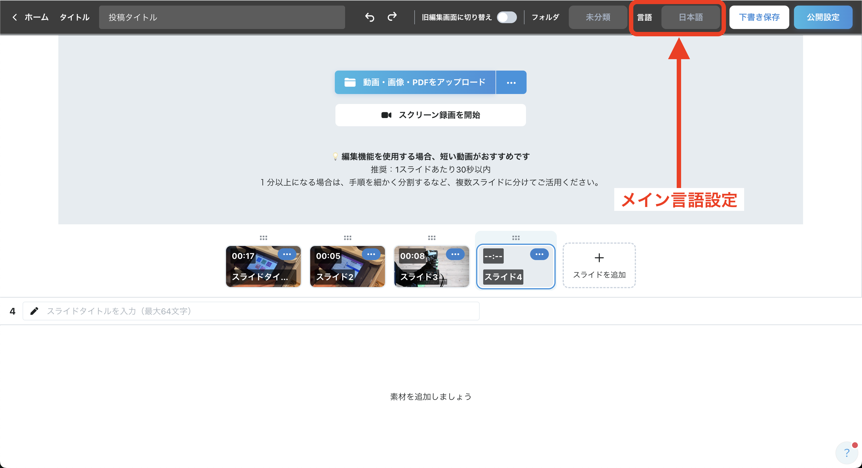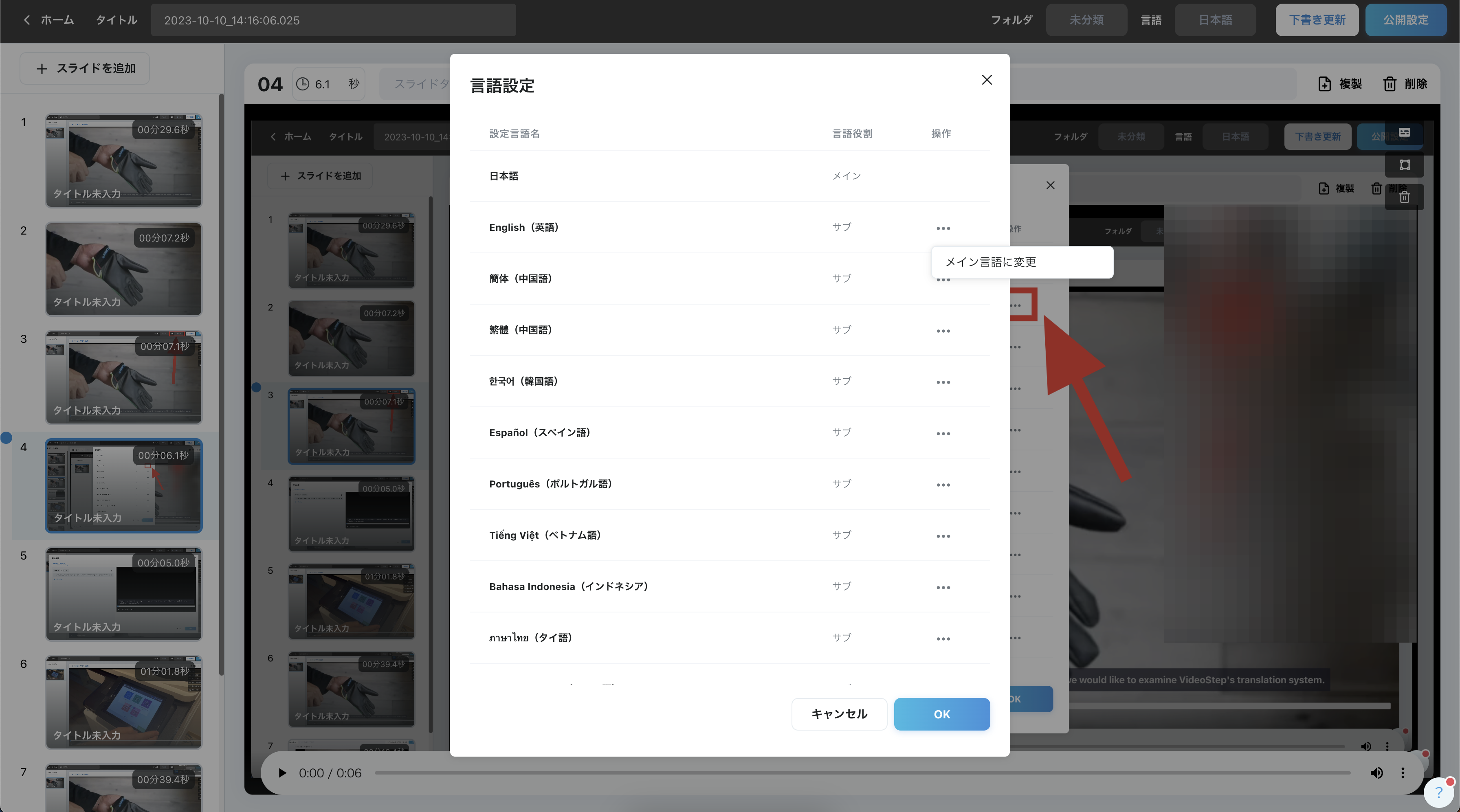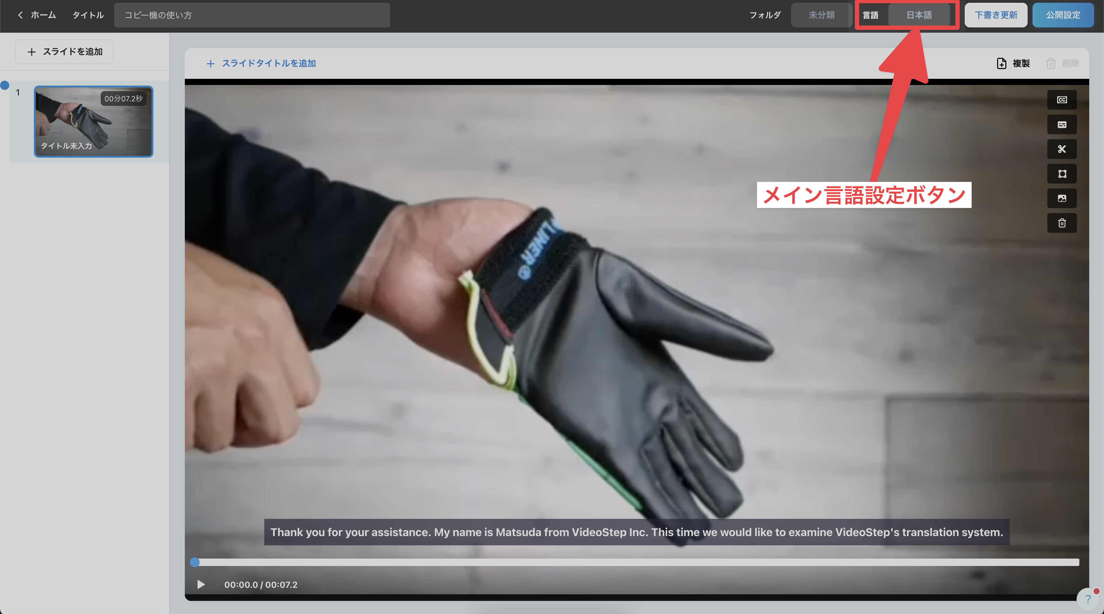 翻訳の方法について、以前は基本的に日本語で作成された動画を翻訳する仕様となっておりましたが、2023/10/06より、他の言語をメインとして設定し、動画を制作することが可能になりました。