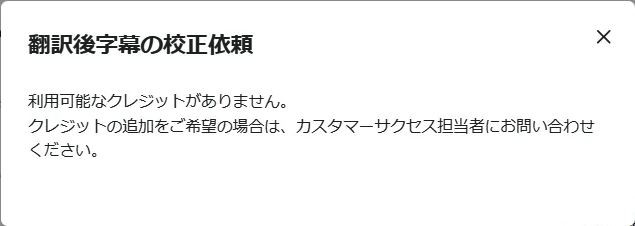 リクエストの際は、校正を依頼する字幕の文字数に応じてクレジットが消費されます。