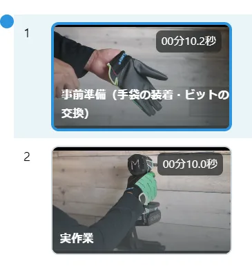 VideoStepの編集画面に下記のようにスライドの一覧が表示されており、スライドのサムネイルは動画のアップロード時に自動的に設定されます。