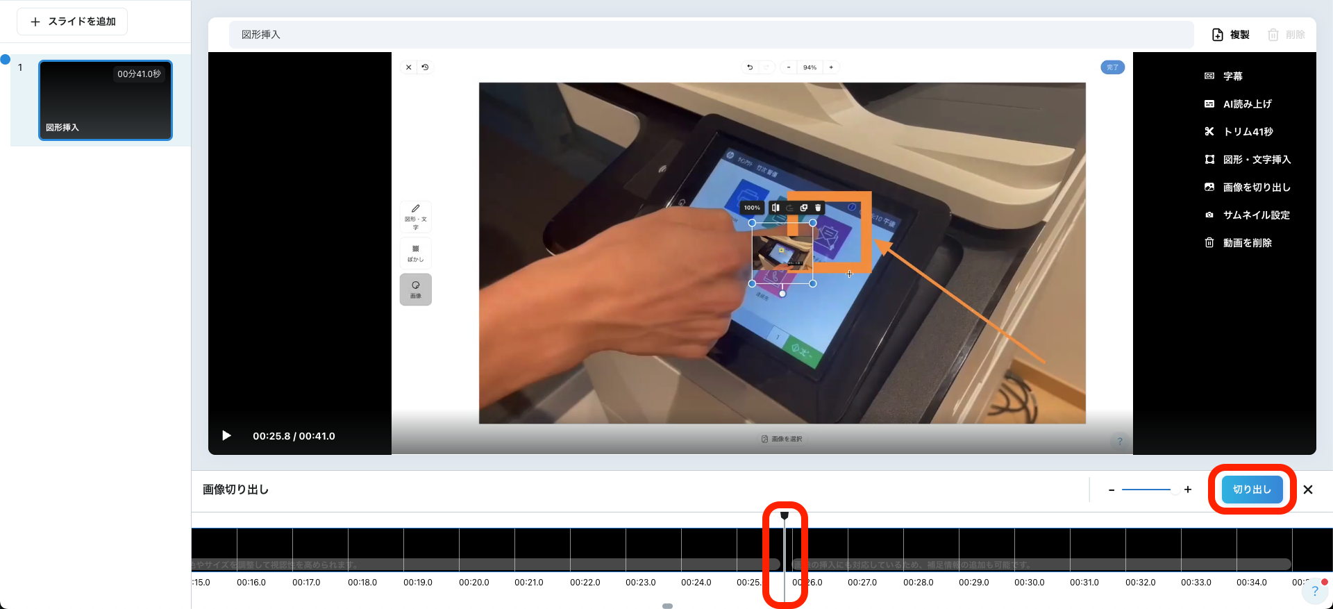 左下に「動画から画像を切り出しました」と表示され、画像スライドが追加されます