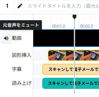 「元の音声キープオフ」スイッチを、読み上げ設定画面からタイムラインの「動画」の左側へ移動