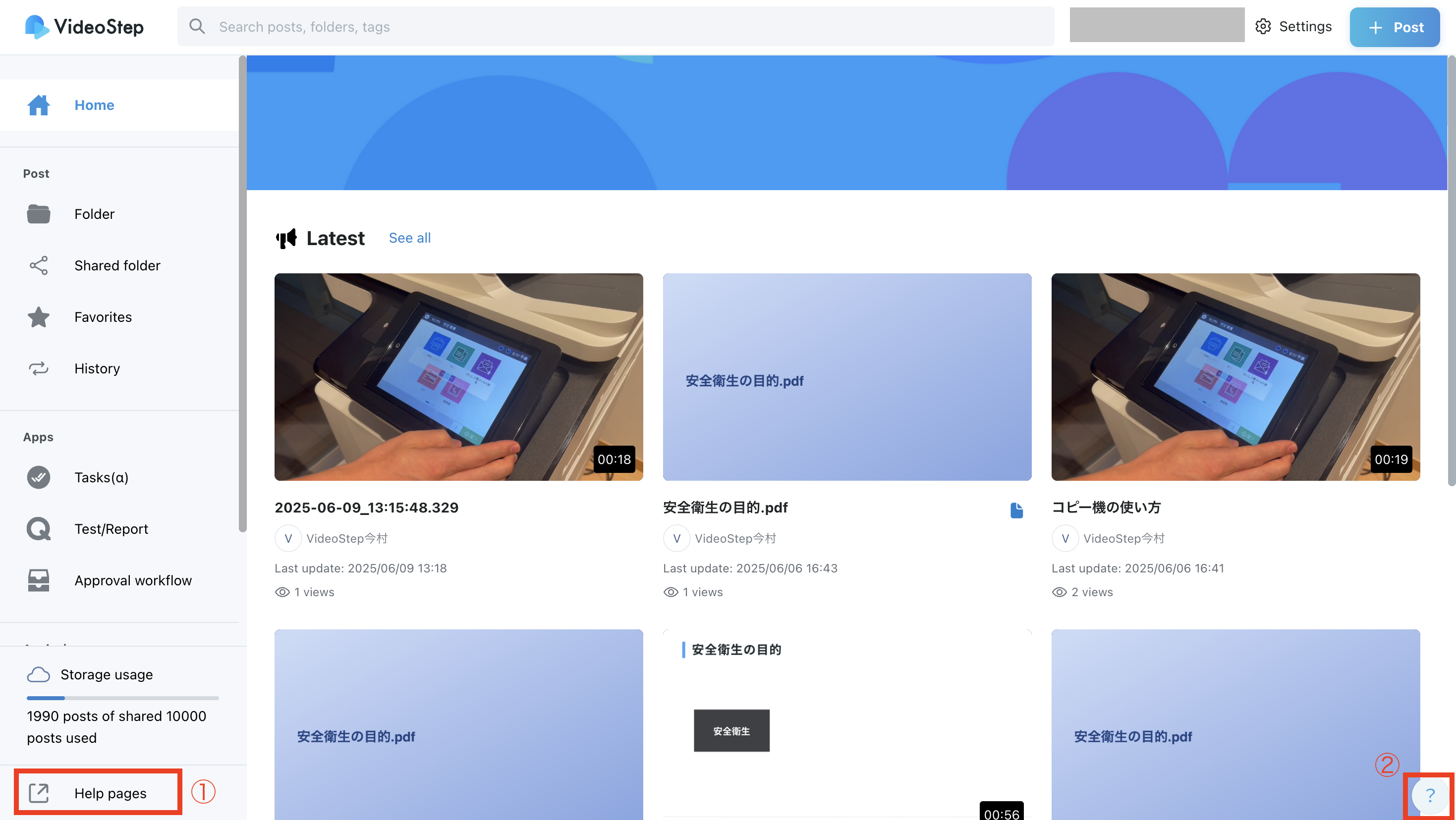 There are two types of help and support available within the VideoStep service: