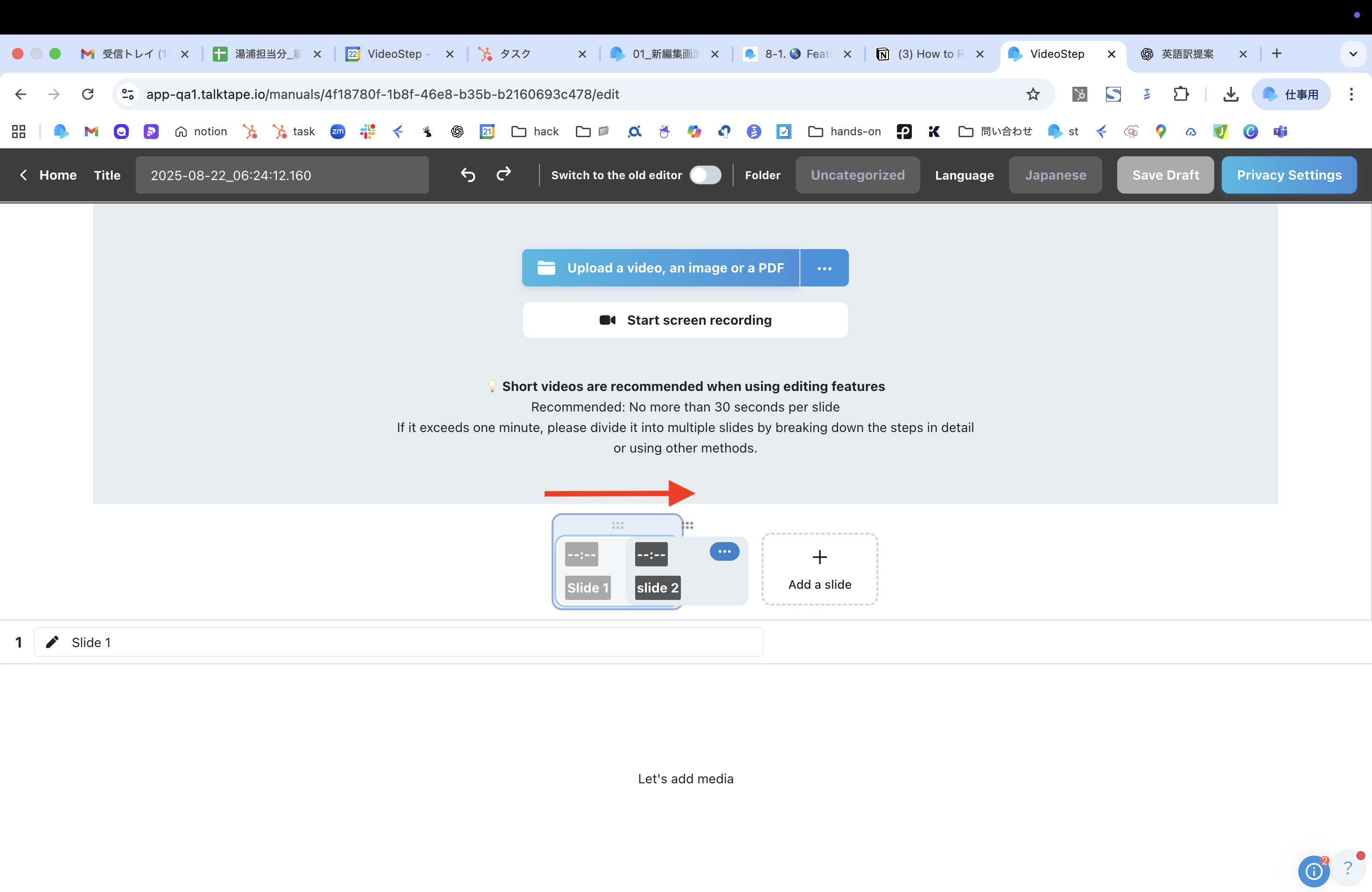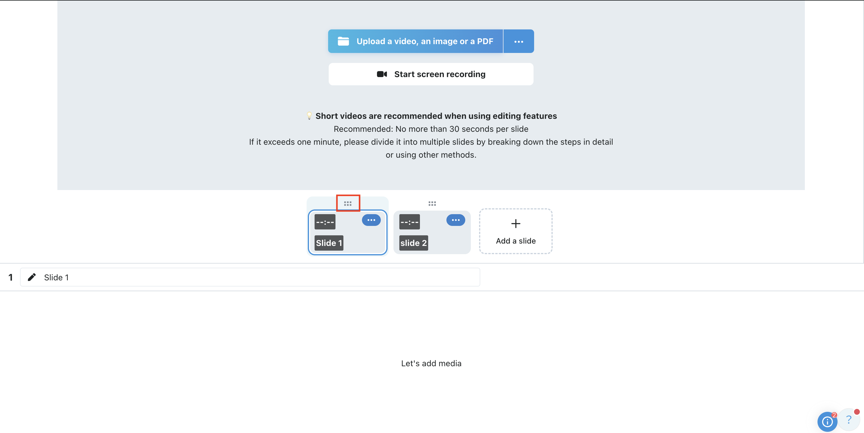 VideoStep allows editing in a slide-based format, and the slides can be rearranged freely.