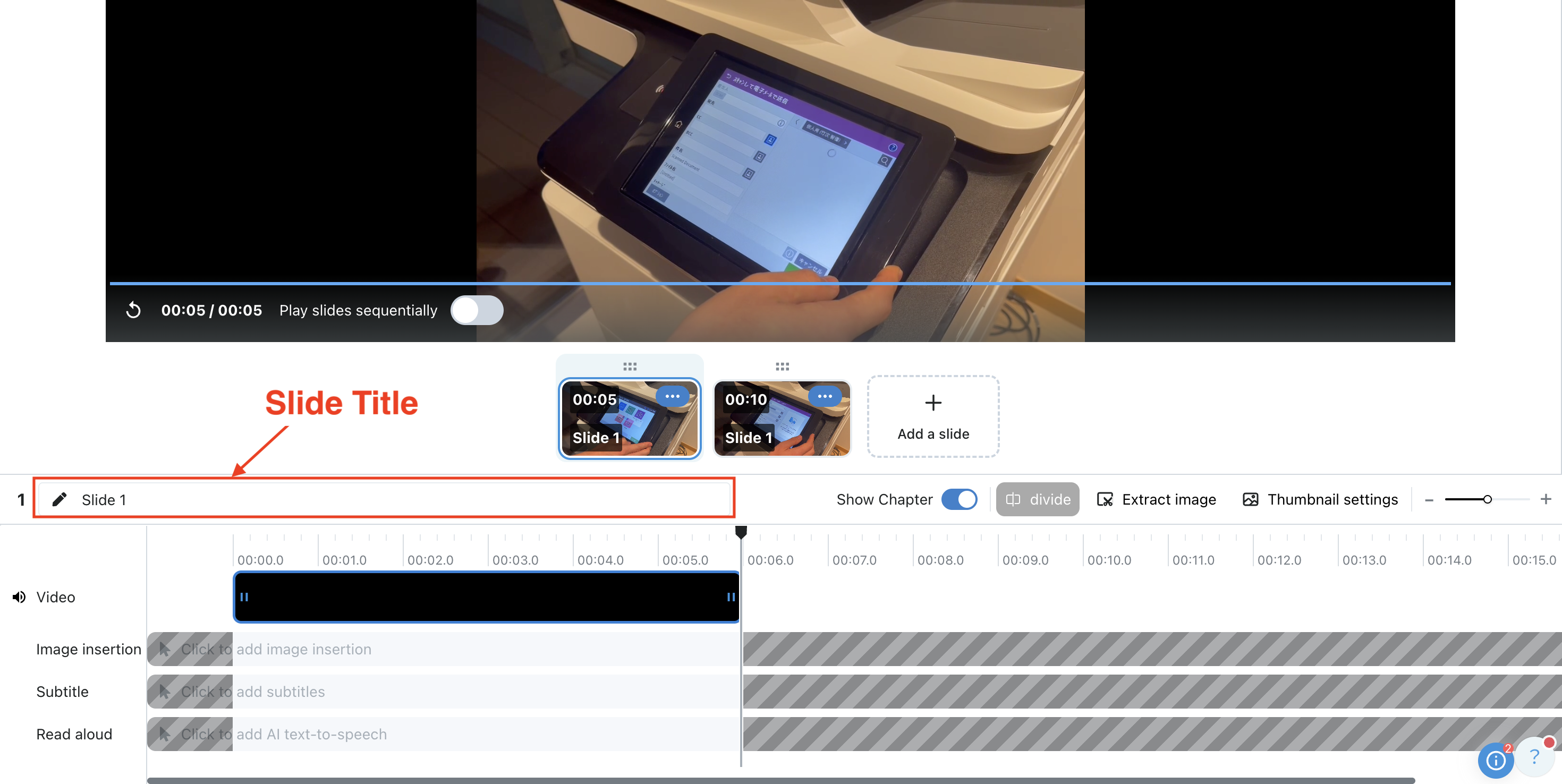 There are two types of titles in VideoStep: