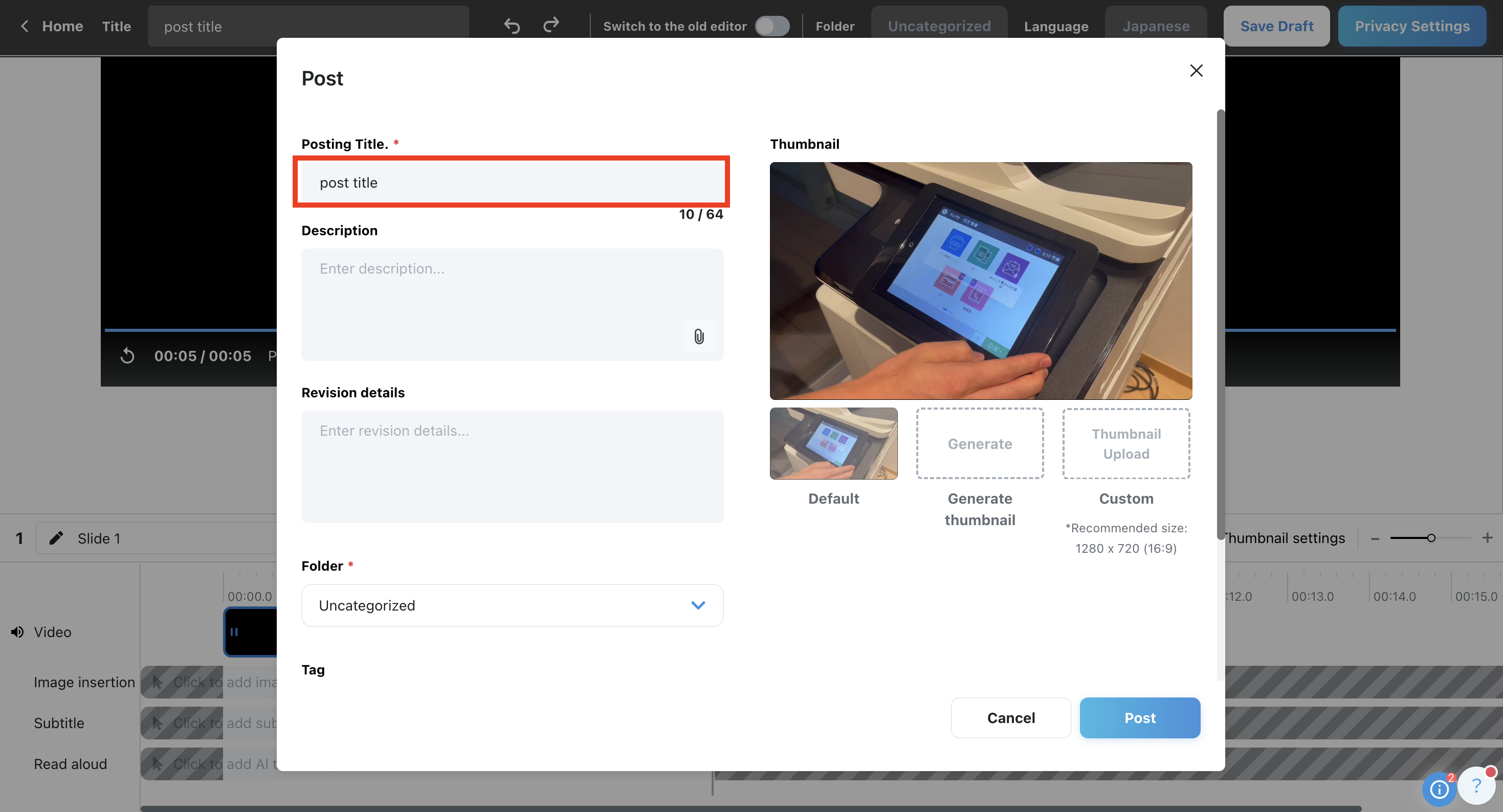 When creating a post in VideoStep, you are required to enter a title.