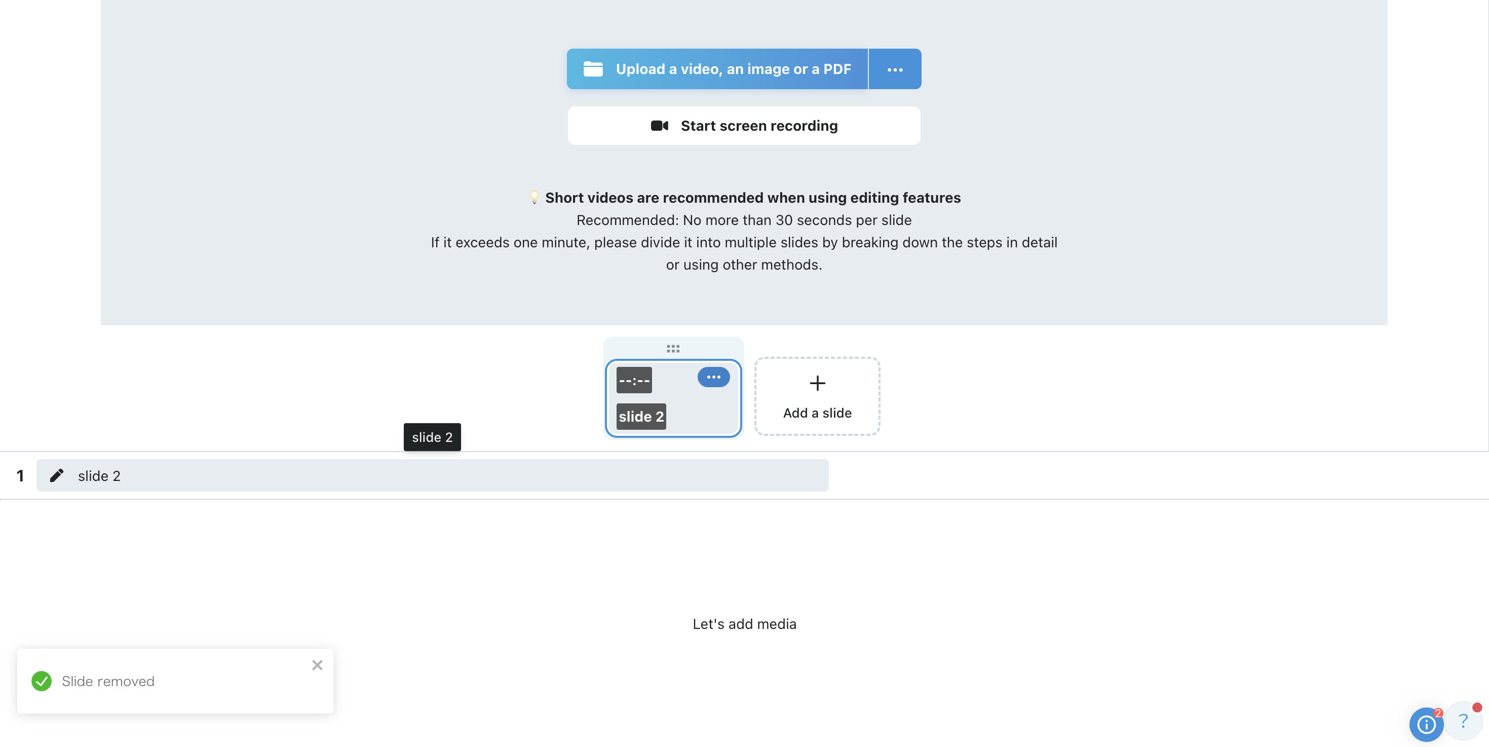 A message saying “Slide removed” will appear in the bottom left, and the slide will be removed.