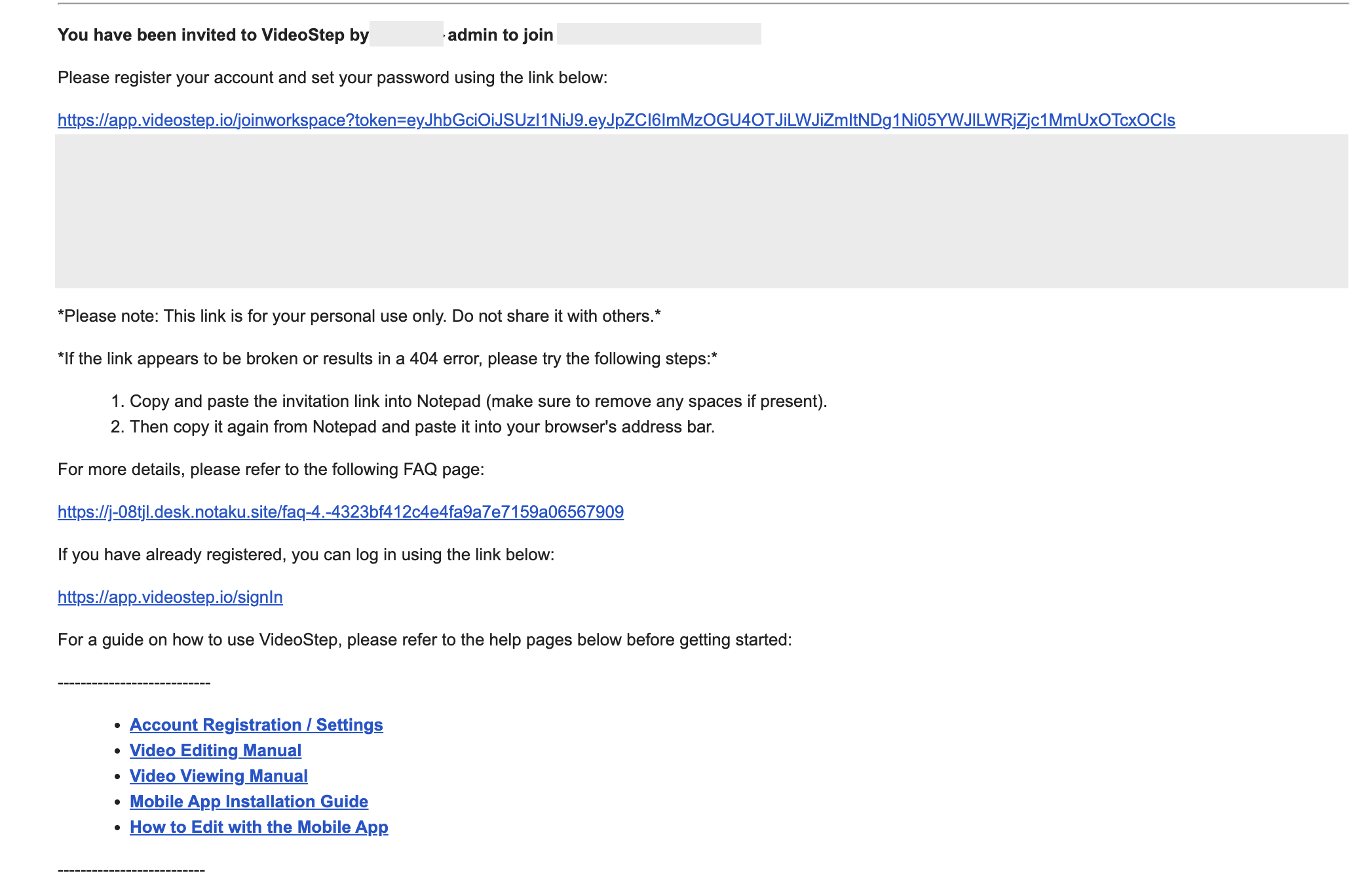 An administrator sends you an invitation email.