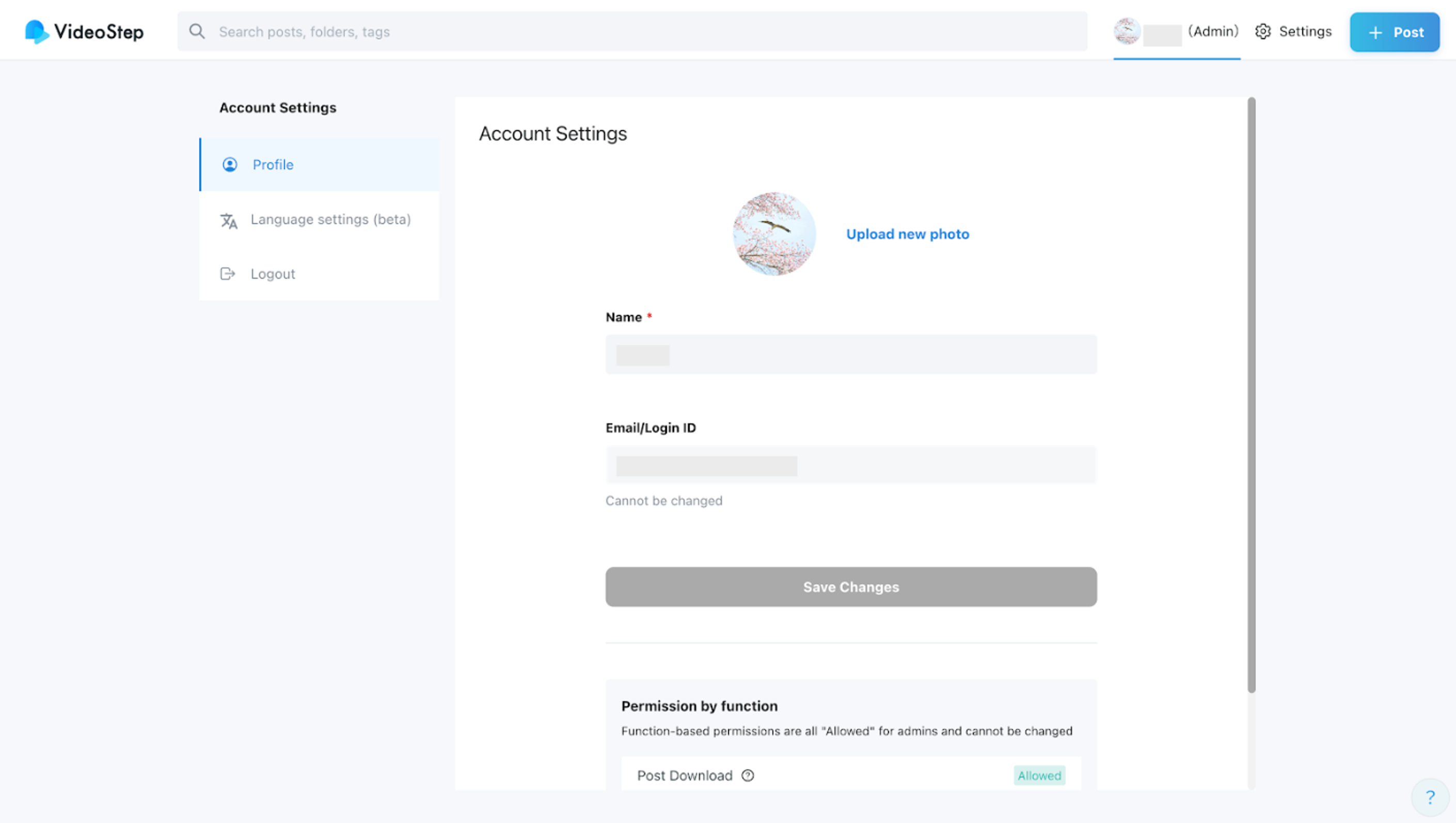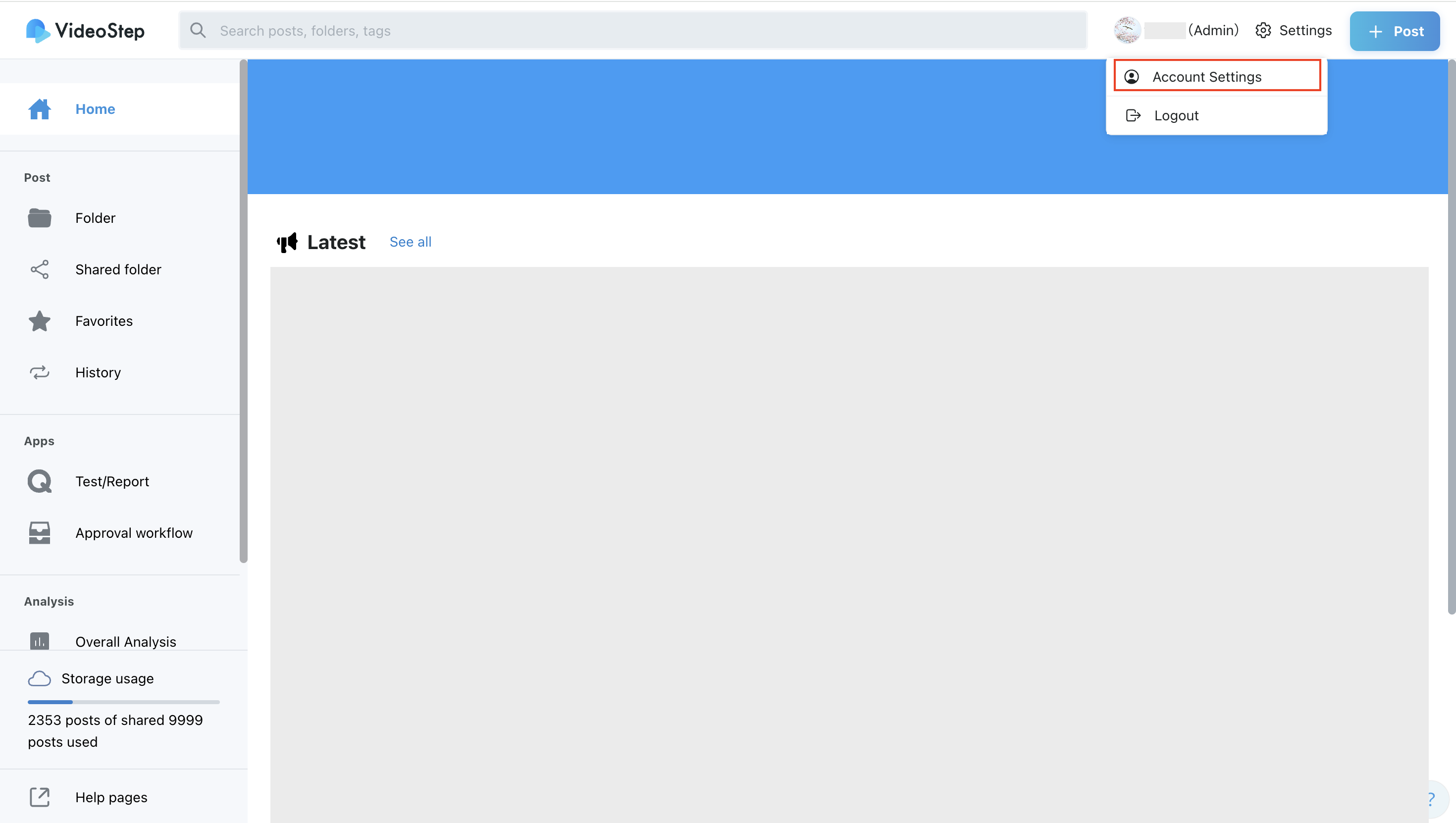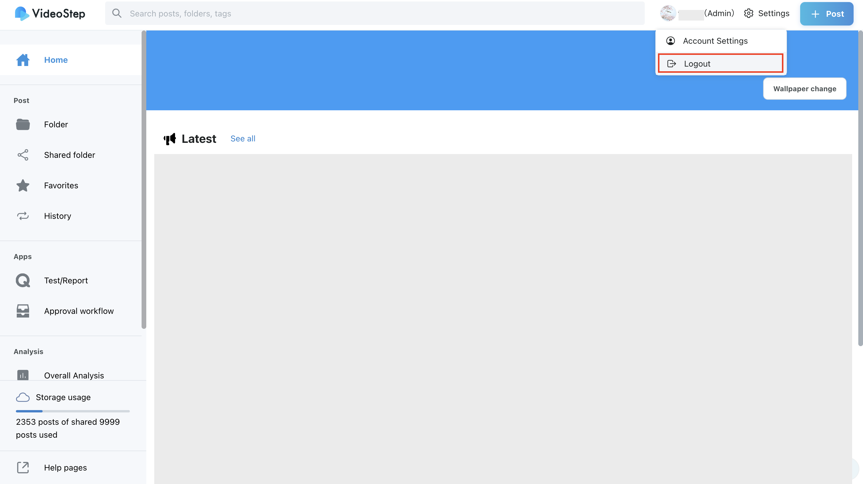 Click your profile in the upper right corner of the VideoStep home screen and select “Log Out.”