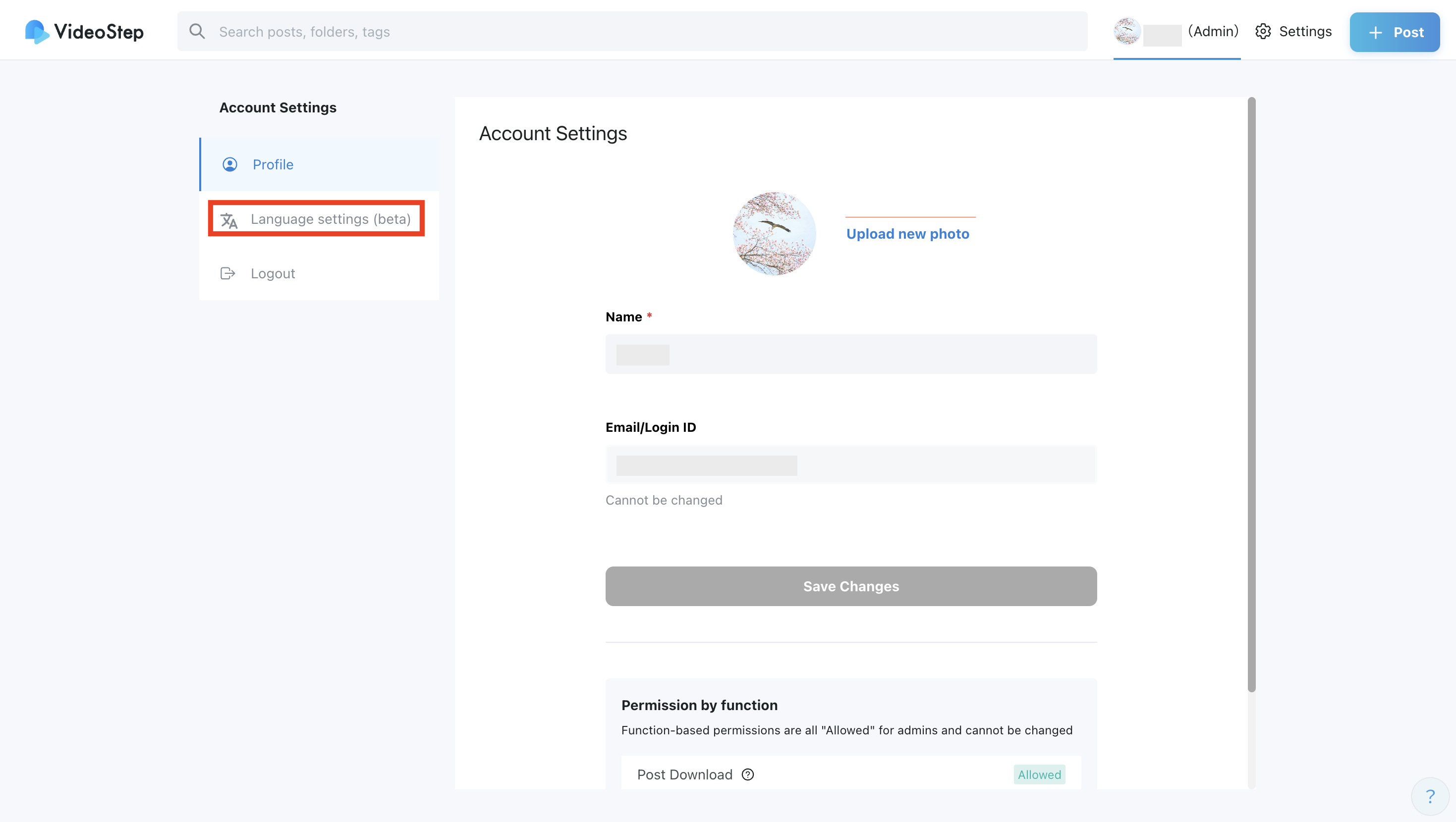 5. To change the display language within your workspace to English, select “Language Settings” on the left.