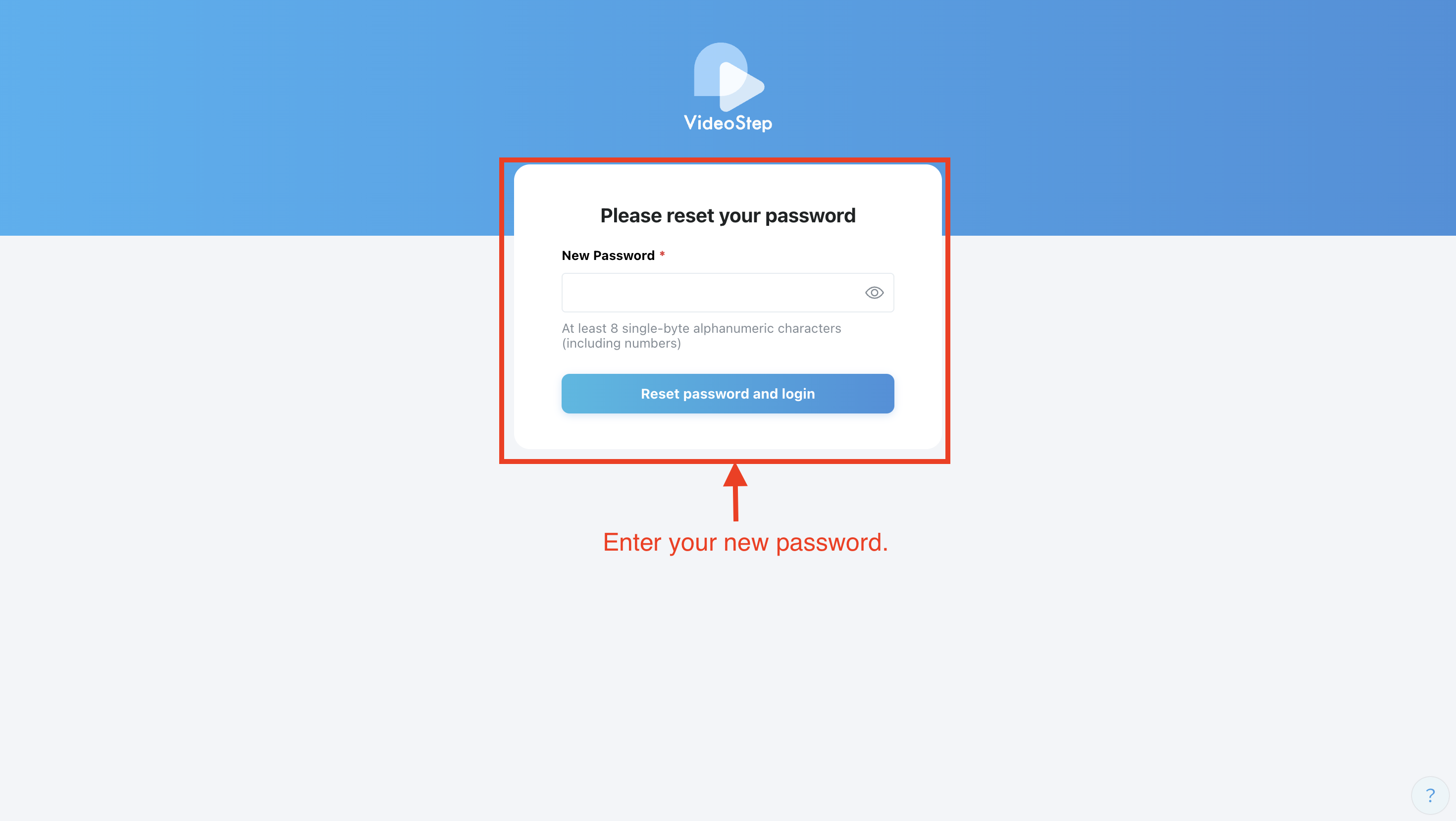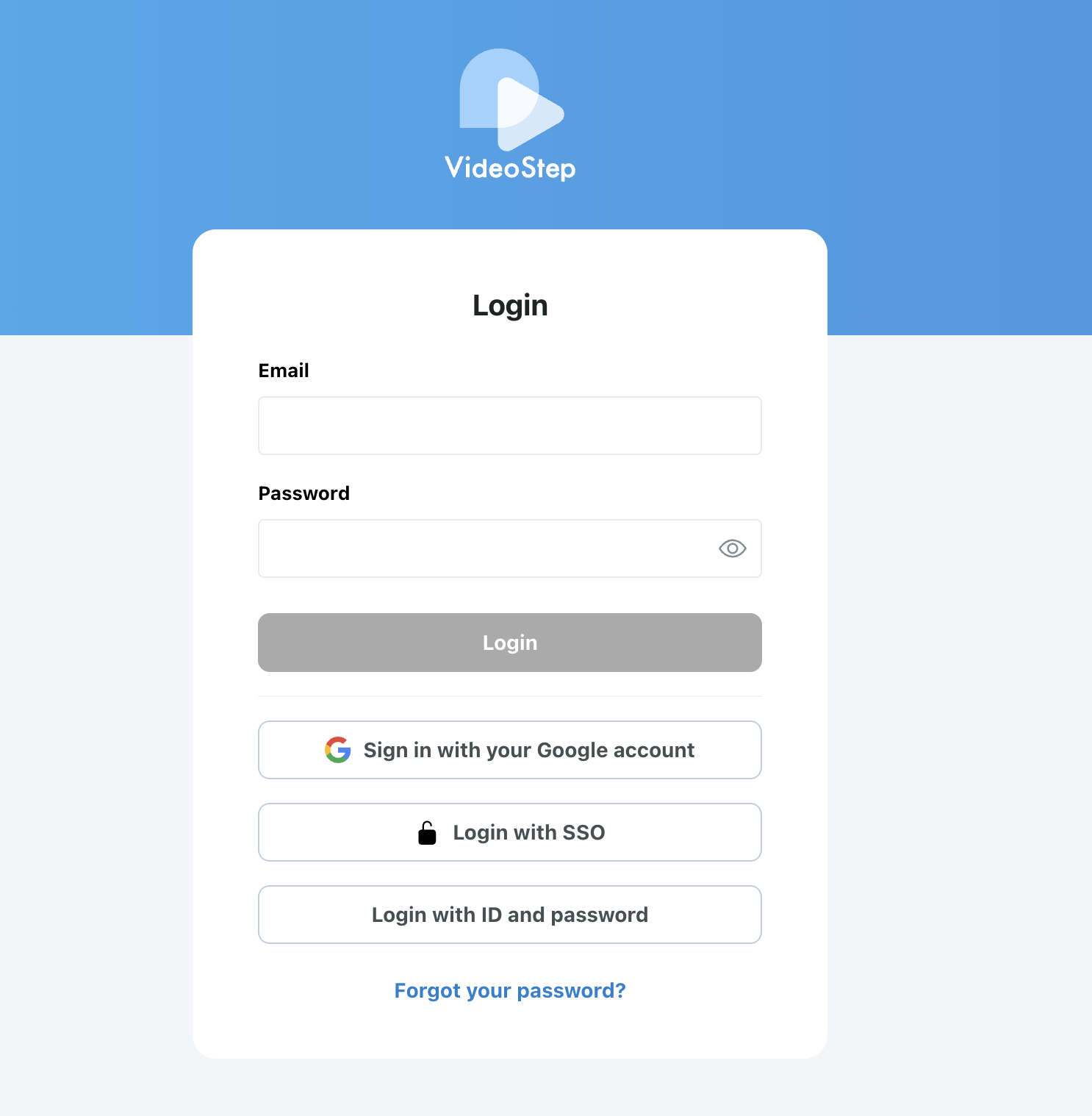 1. On the VideoStep login screen, click “Forgot your password?” at the bottom.