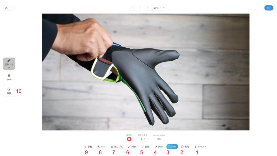 8. 消しゴム(挿入した文字や図形を削除するときに使用します)
