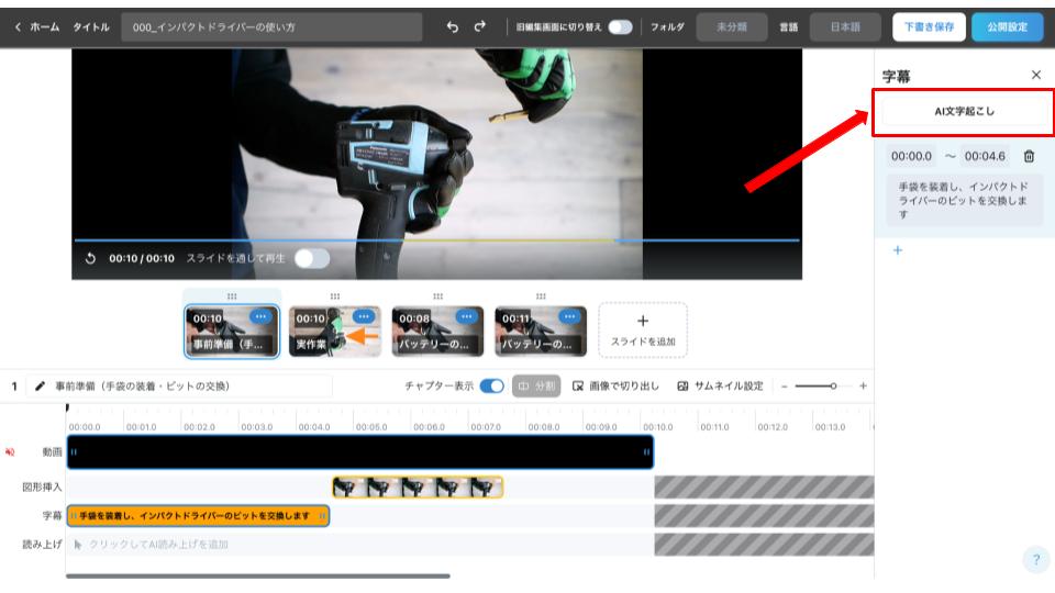 字幕は手動追加AI文字起こしの2通りで作成できます。