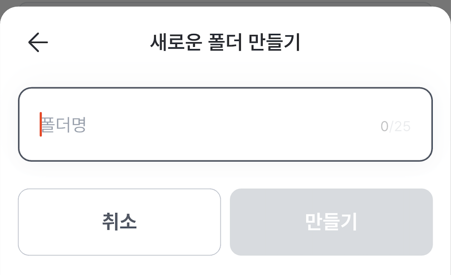 '새 폴더 만들기'를 누르면 나오는 '새로운 폴더 만들기'에서 이름을 적고 만들기 버튼을 누르면 끝입니다. 관심매장을 추가할 때마다 매번 폴더를 만들면 귀찮은 일이 되어버리기 때문에 한번 폴더를 선택하면 그 다음부터는 폴더를 바꾸기 전까지 계속 같은 폴더에 저장되도록 했어요.