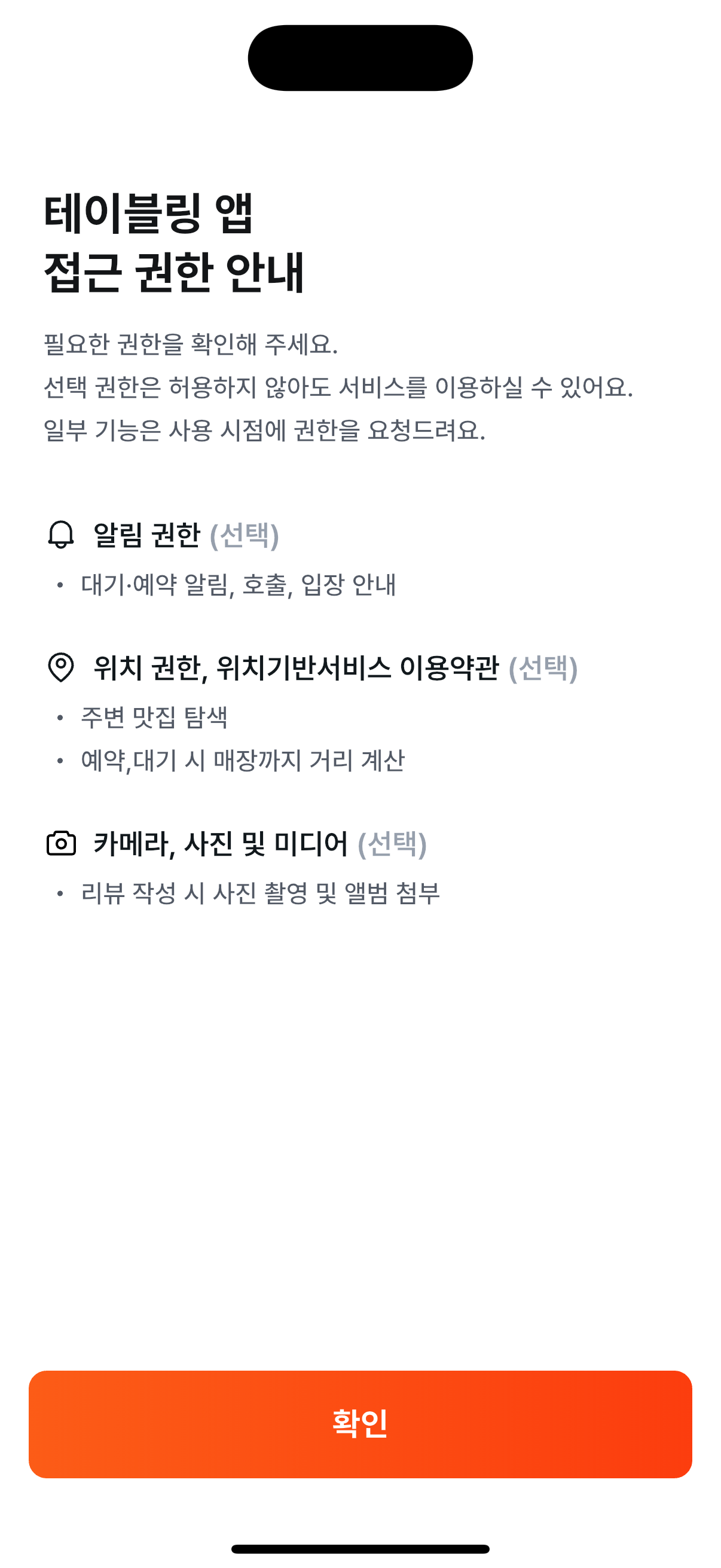 앱 최초 실행 시, 필요한 권한과 그 이유를 미리 쉽게 이해할 수 있도록 안내 화면을 개선하고, 권한 팝업이 순서대로 노출되도록 수정했어요.