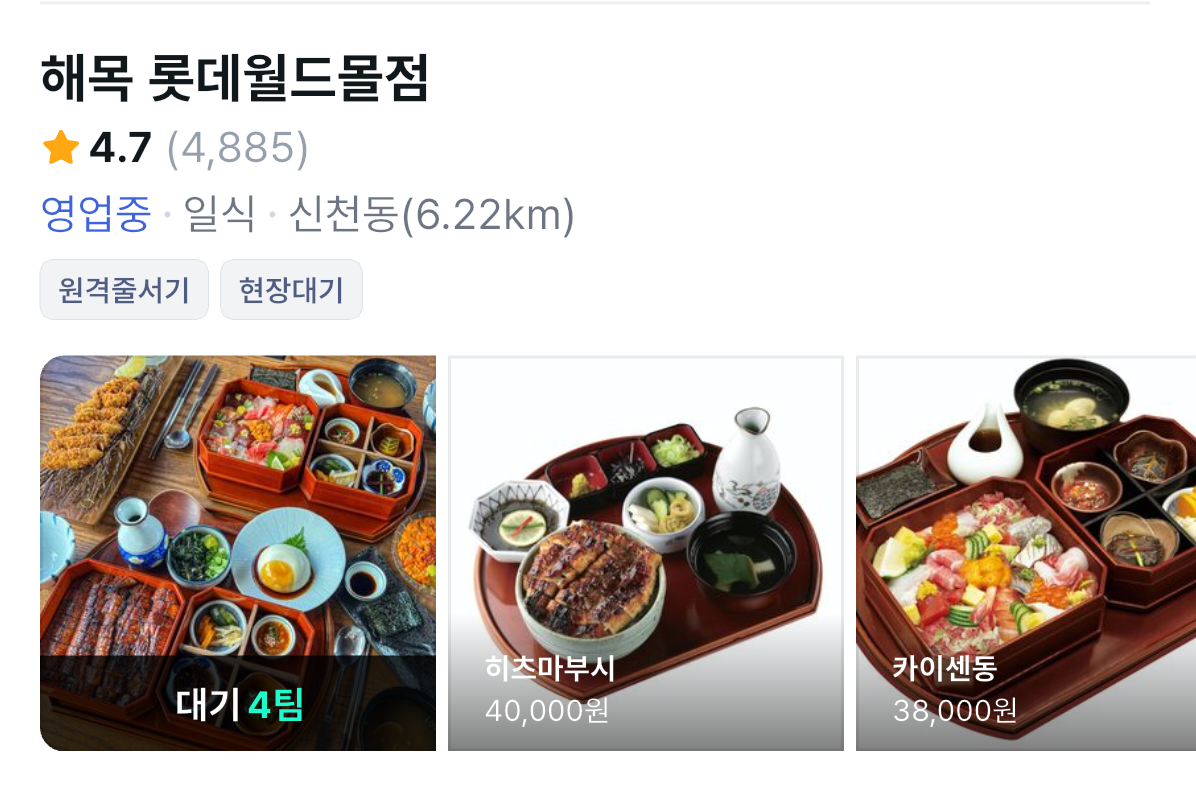 지도와 매장카드에서 매장의 '지금 매장 이용 가능 여부'를 더 직관적으로 확인하실 수 있게 바뀌었어요. 매장의 테이블 현황(예: 빈자리 있음, 만석임박, 만석)을 한 눈에 볼 수 있고, 대기 팀수도 상황에 따라 함께 표시되어 지금 매장을 이용할 수 있는지 더 쉽게 파악할 수 있어요. 또한 영업 중이 아닌 매장은 명확하게 구분해 헷갈림을 줄였어요.