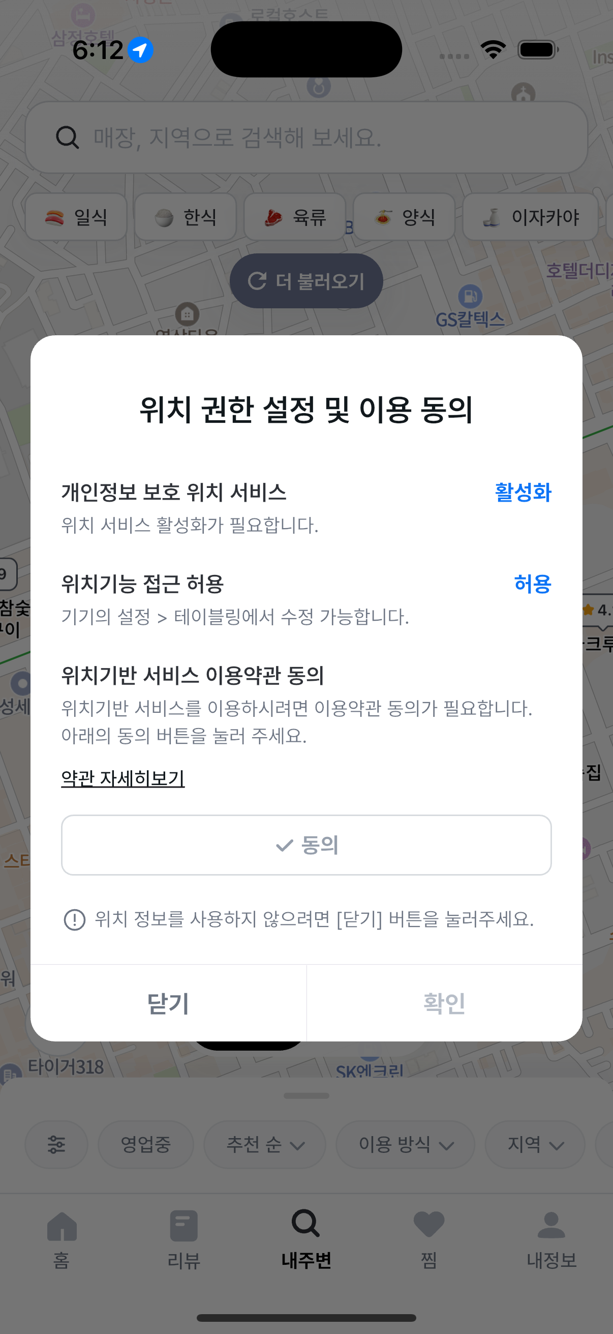위치 권한 설정 및 이용 동의 팝업도 사용자가 한 눈에 인지할 수 있도록 UI를 더 명확하게 다듬었어요.