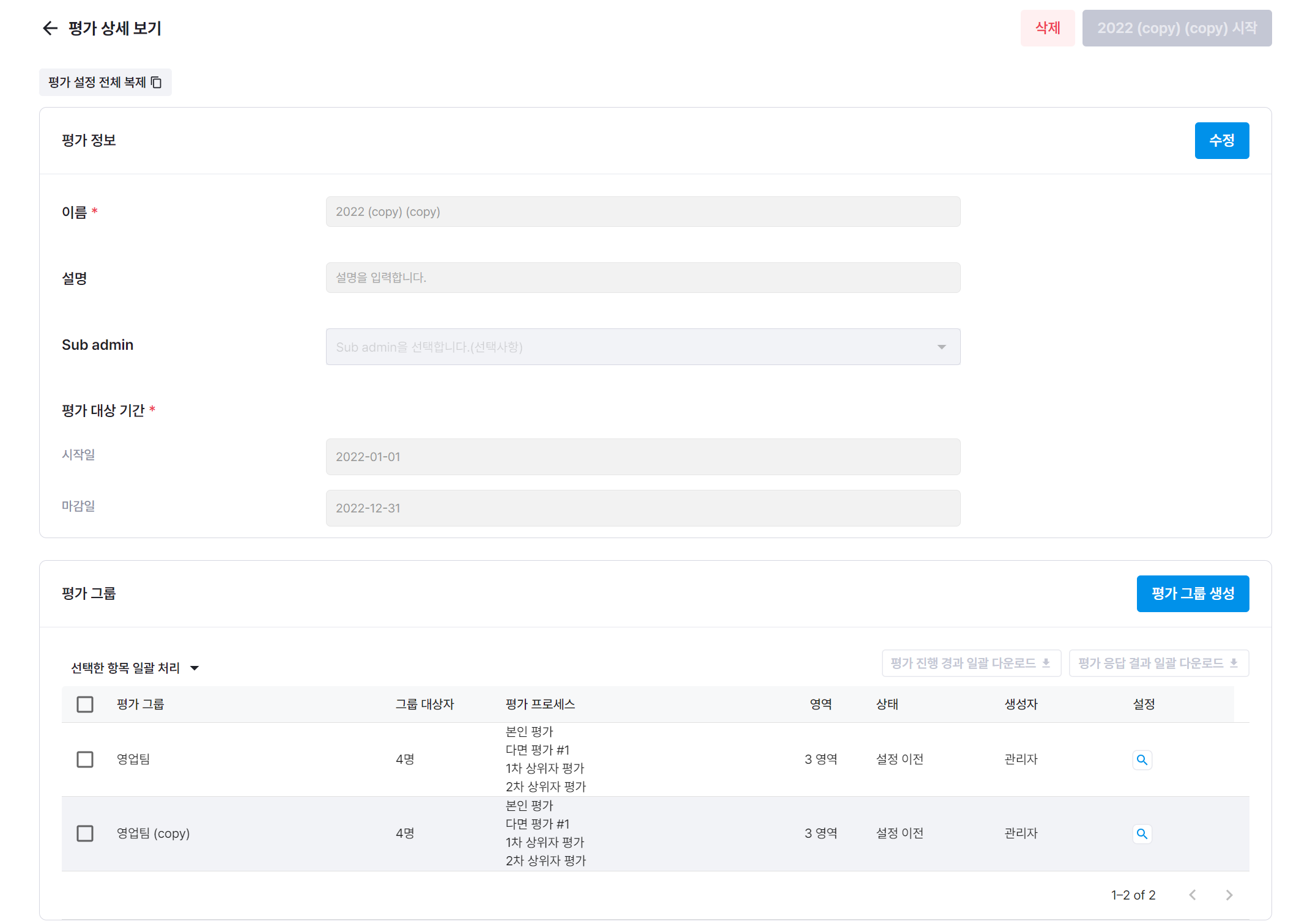 대상 인원을 수정해서 동일한 세팅의 평가를 진행할 수 있습니다.
