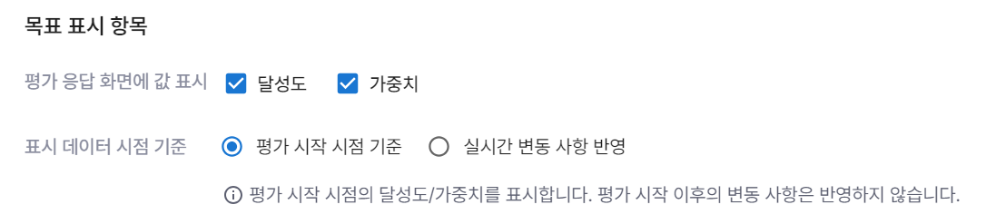 영역 설정 > 평가항목 > 목표 or 핵심성과 > 표시 데이터 시점 기준