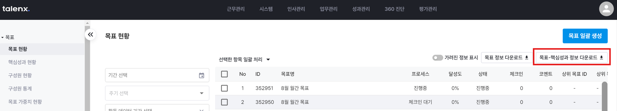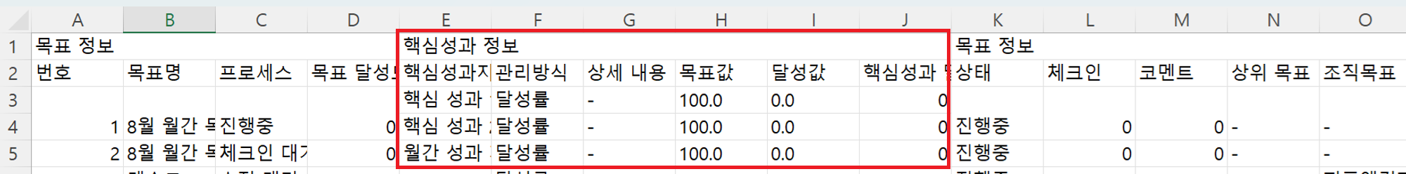 성과관리 > 목표현황 > 목표-핵심성과 정보 다운로드