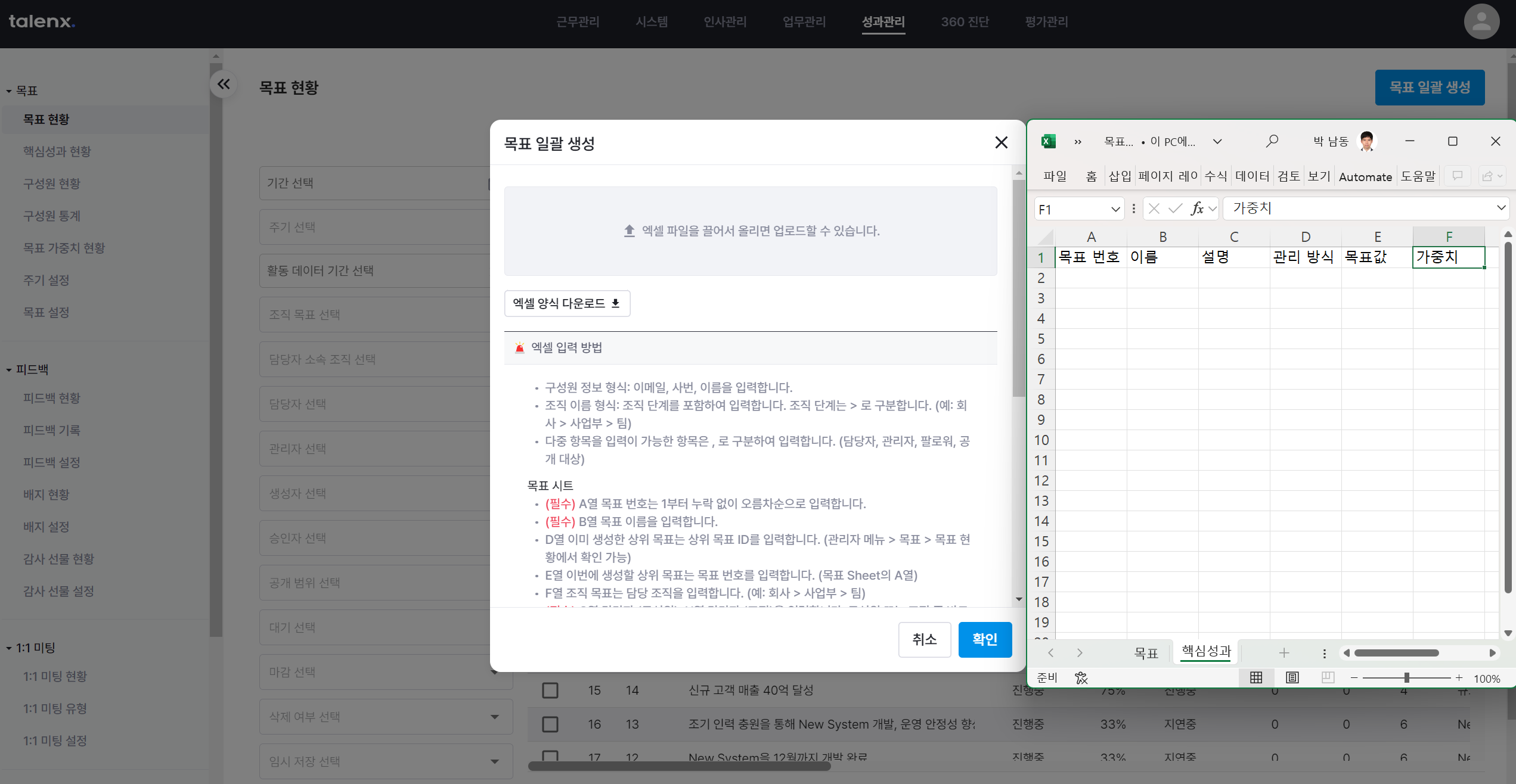 Admin > 성과관리 > 목표현황 > 목표 일괄 생성 (엑셀 양식 다운로드 )