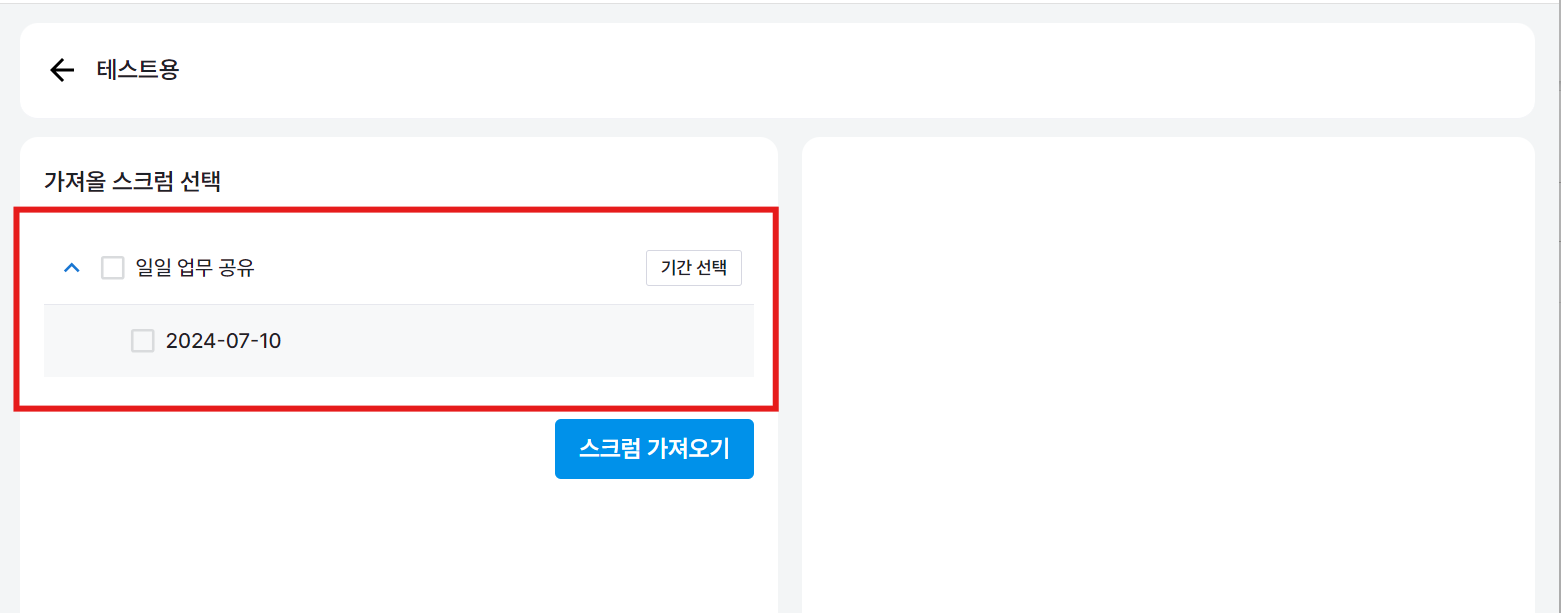 기존에 작성한 스크럼 중 전체를 옮길 수도 있고, 일부 스크럼만 선택해서 가져올 수도 있습니다.