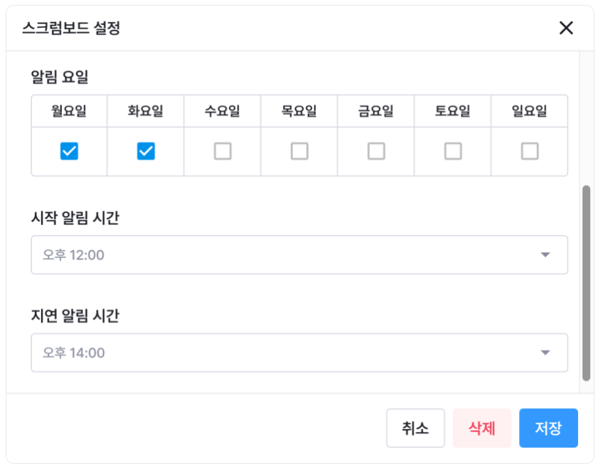 스크럼보드 관리자가 자유롭게 스크럼보드의 설정 변경 가능