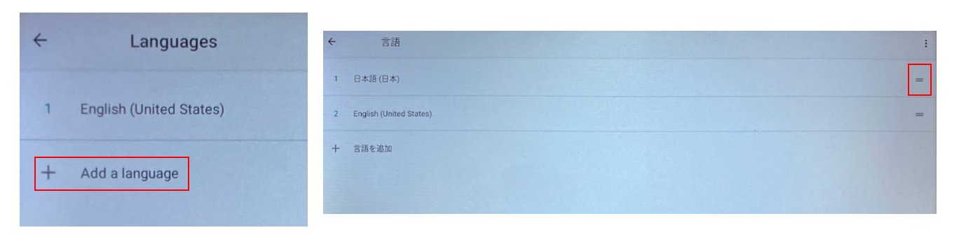 [Add a language] から日本語を追加し、日本語を一番上に移動してください。