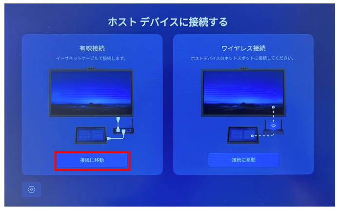 本機を起動し、有線接続の[接続に移動]を選択してください。