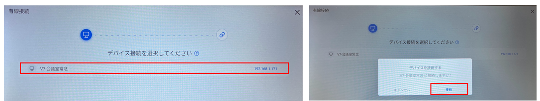 本機と接続するミーティングボードを、同一ネットワーク上で有線LANに接続してください。