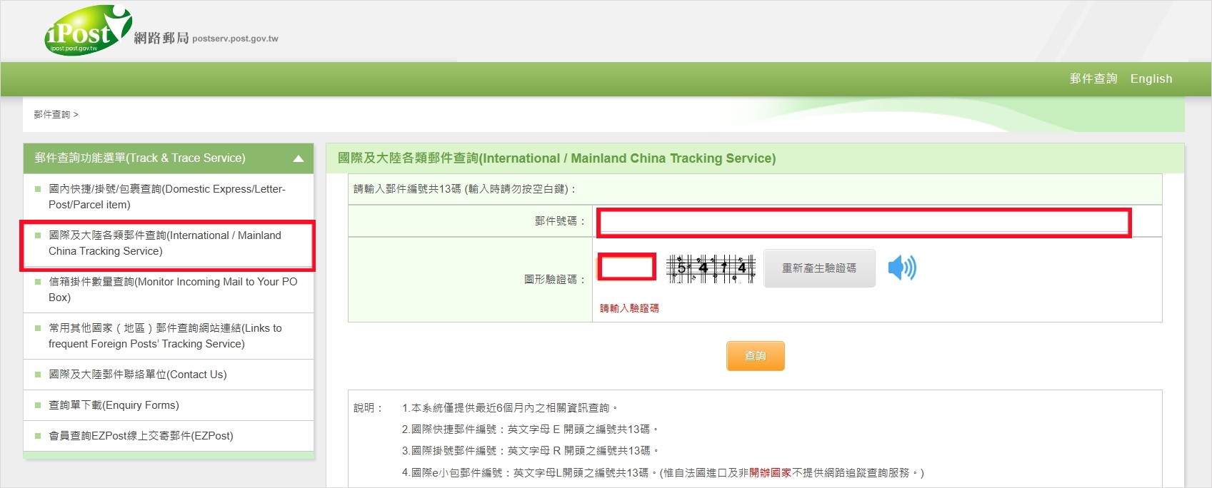 대만 중화우정 홈페이지에서 조회하는 방법입니다. 중국어(번체)로 조회해야 하는 번거로움이 있지만 발송 관련 정보가 조금 더 자세합니다.