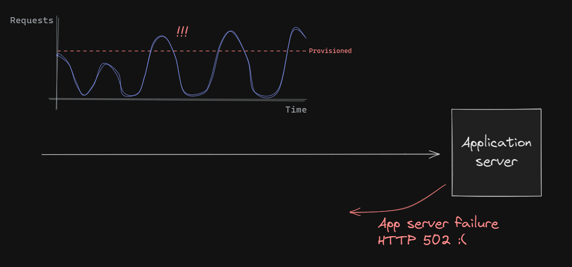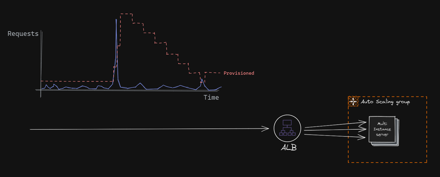 Spike 트래픽이 일정한 시점마다 예상된다면 그 전에 미리 많은 instance를 띄워놓는 방법도 있지만 (예를 들어, 많은 인기를 끌 것으로 예상되는 신기능 출시 전, 미리 서버를 올려둔다던지) 항상 트래픽을 예상할 수 있는 것은 아니에요. 항상 많은 instance를 올려두는 것은 비용 면에서 낭비이기도 합니다.
