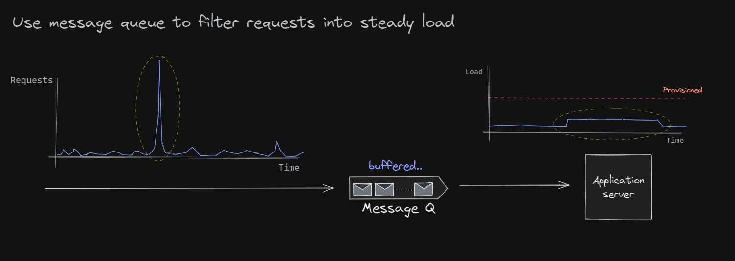 물론 DynamoDB의 경우, 용량 초과 에러를 받았을 때 클라이언트 SDK 내에서 일정 간격을 두고 재시도하거나, DynamoDB에서 spike traffic을 처리할 수 있는 여유를 제공(burst capacity)하는 등, 이 문제에 대한 해결책을 제시하고 있습니다. 하지만 더 일반적인 해법이 필요합니다.