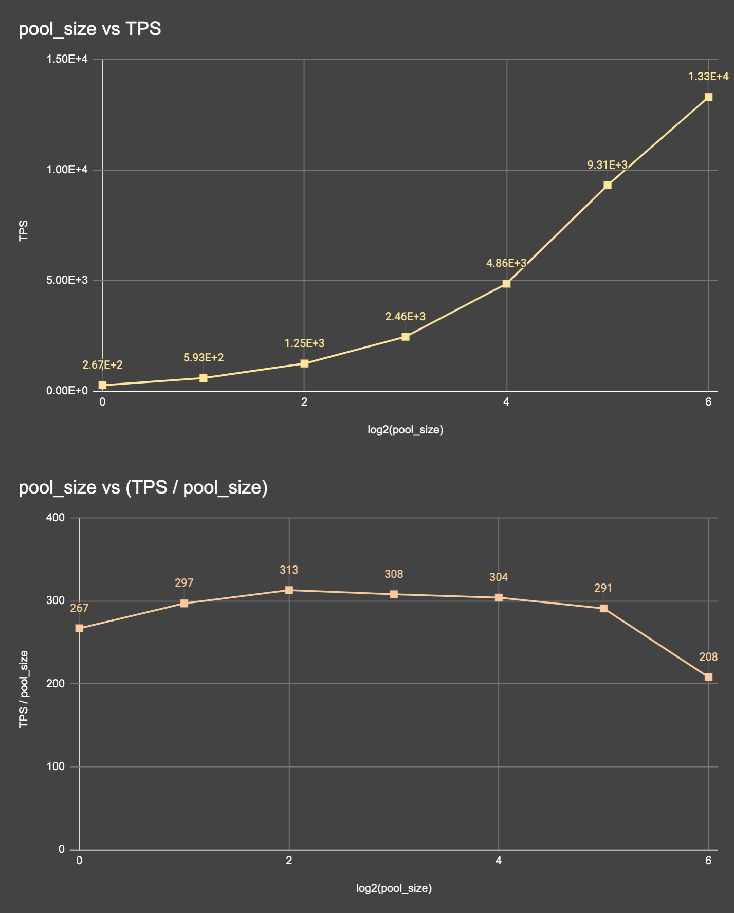 먼저 아무 일도 하지 않고 SQS로부터 메시지를 받아서 consume하기만 하는 worker를 구성했습니다. 그리고 worker thread의 개수에 따라 최대 메시지 처리 속도를 측정해보았습니다. Worker의 처리 속도는 worker 개수에 관계 없이 300 TPS 정도로 유지되는 것을 관찰할 수 있었습니다. Queue를 polling하는 worker는 다른 worker의 간섭 없이 독립적으로 작동하니 worker가 n개가 되면, queue에서 메시지가 빠져나가는 속도 또한 n배가 되는 것이죠.