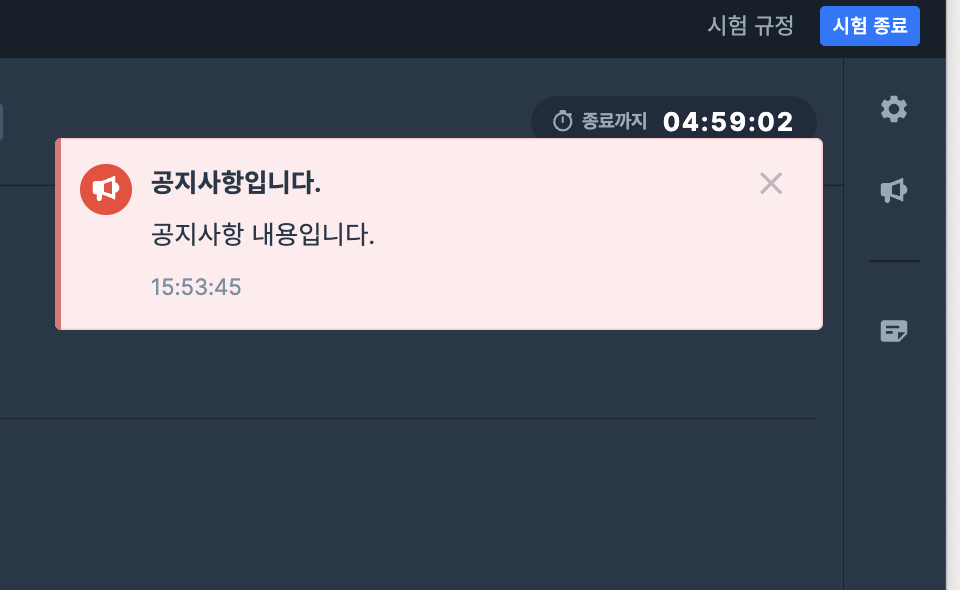 공지사항📢 : 공지사항 발송 시점에 아래 이미지와 같이 배너로 표시되며, 발송된 공지사항은 우측 메뉴에서 확인할 수 있습니다.