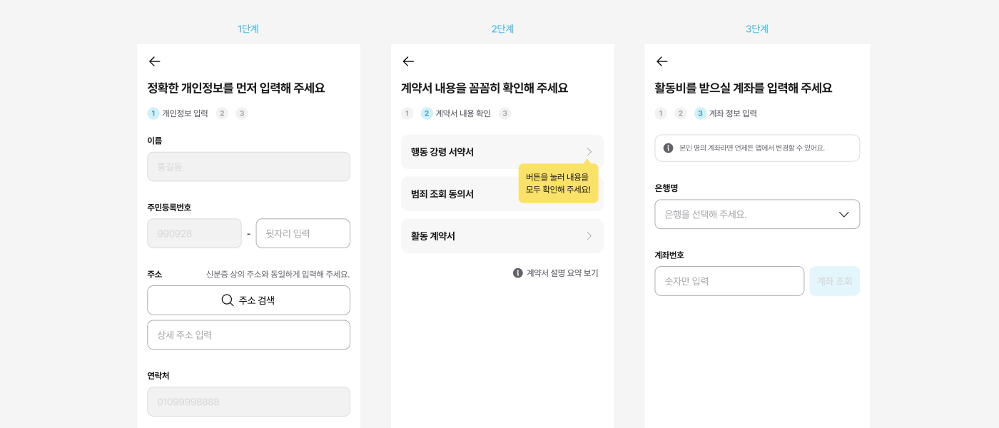 2단계 : 3가지의 계약서 상세 내용을 꼼꼼하게 확인한 뒤 서명하기
