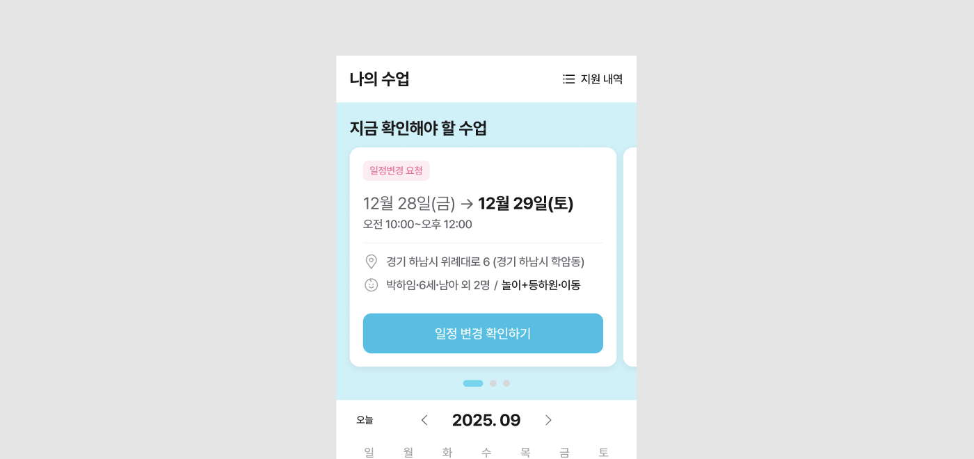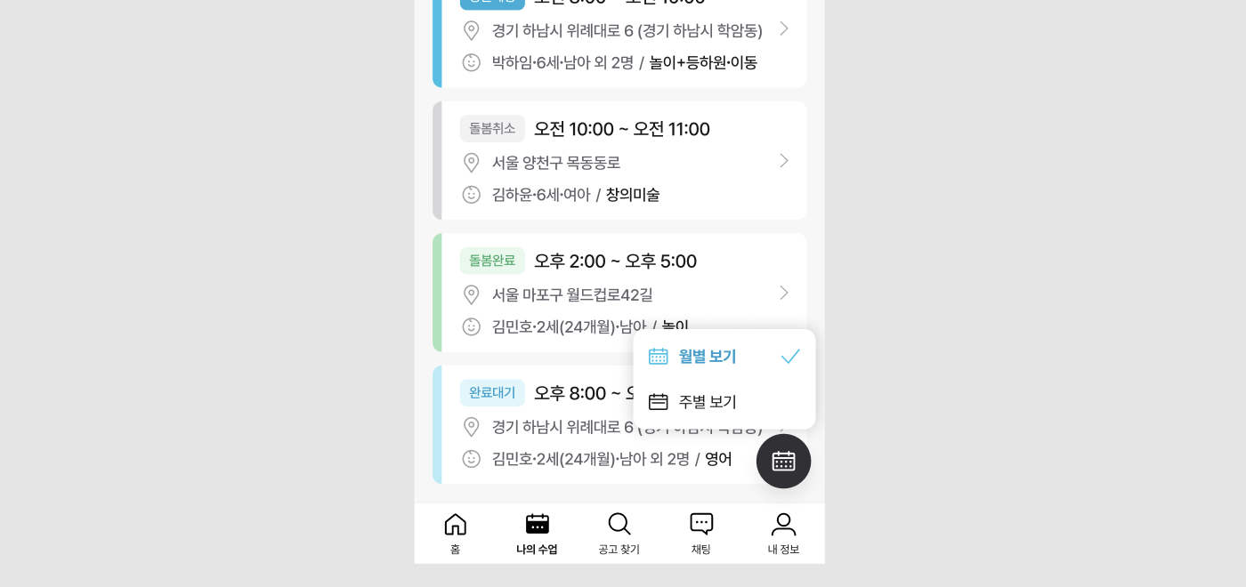 매칭이 완료된 수업 일정은 앱 내 [나의 수업] 버튼을 눌러 확인할 수 있어요.