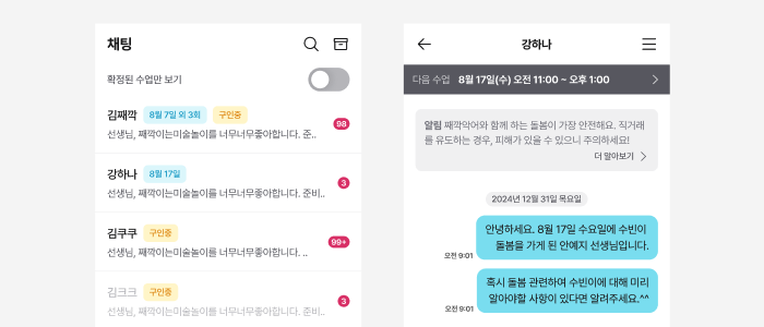 육아와 직장 업무에 바빠 앱 내 메시지를 확인하지 못하거나, 확인하고도 미처 응답하지 못하시는 부모님이 종종 있어 당황스러우실 거예요.