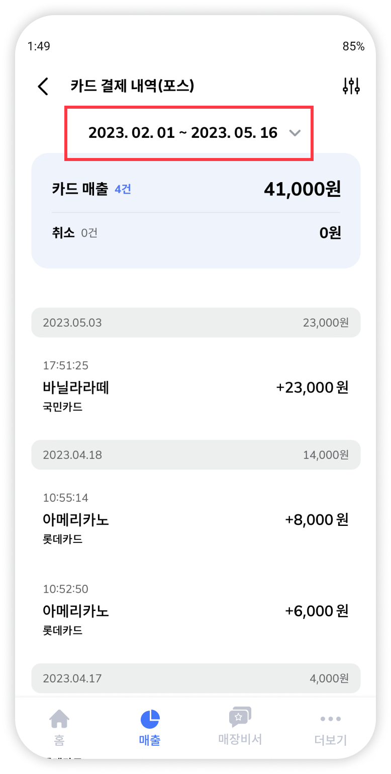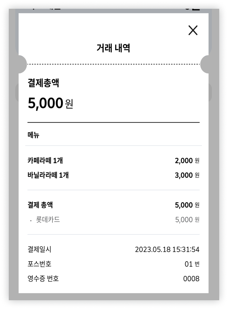 카드 결제 내역(포스)