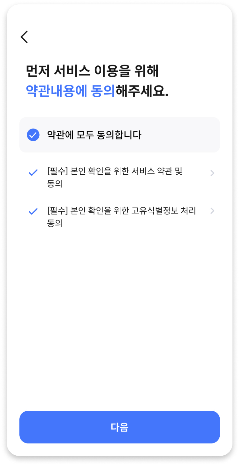 4) 약관내용 확인 후 동의로 진행합니다.