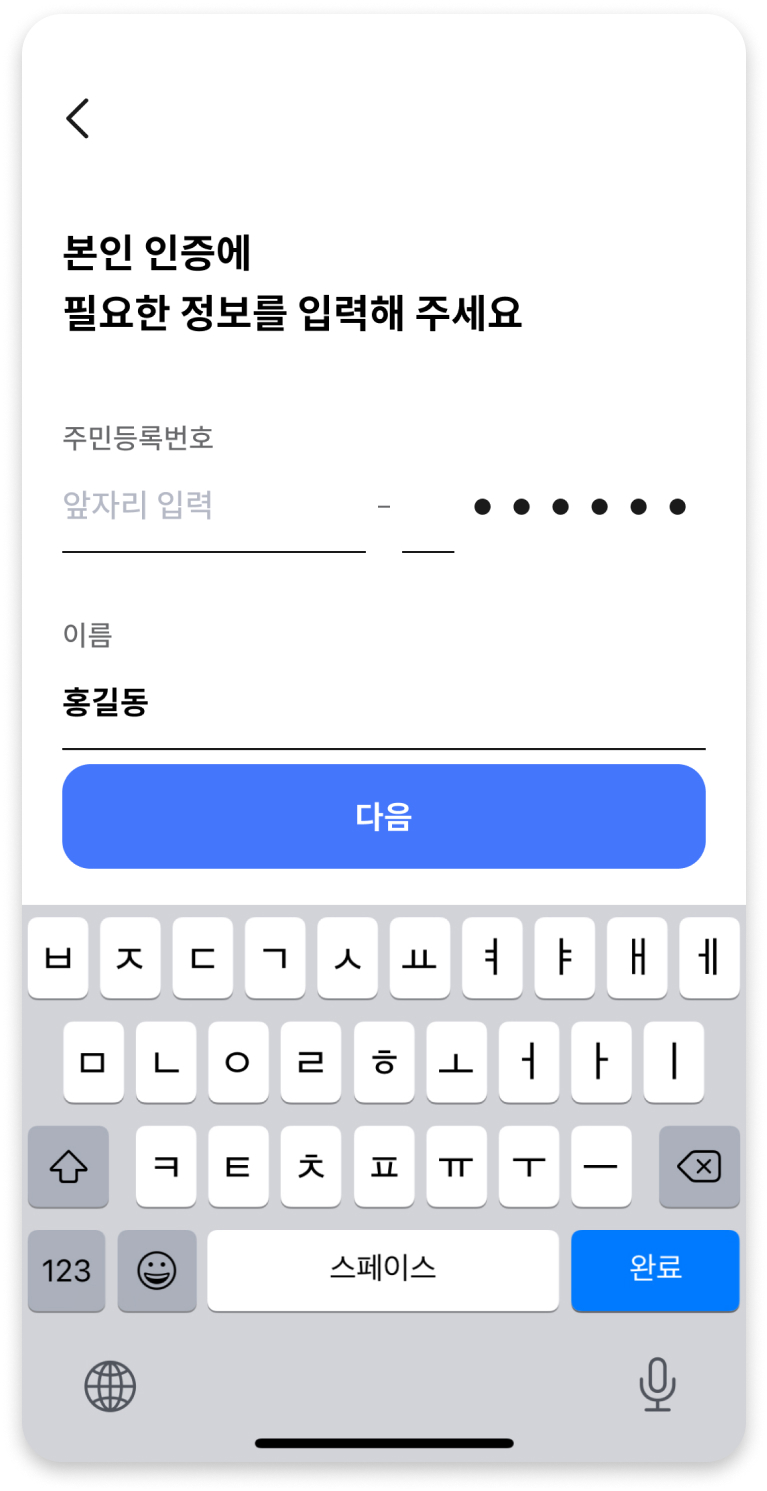 5) 본인 인증에 필요한 정보를 입력합니다.