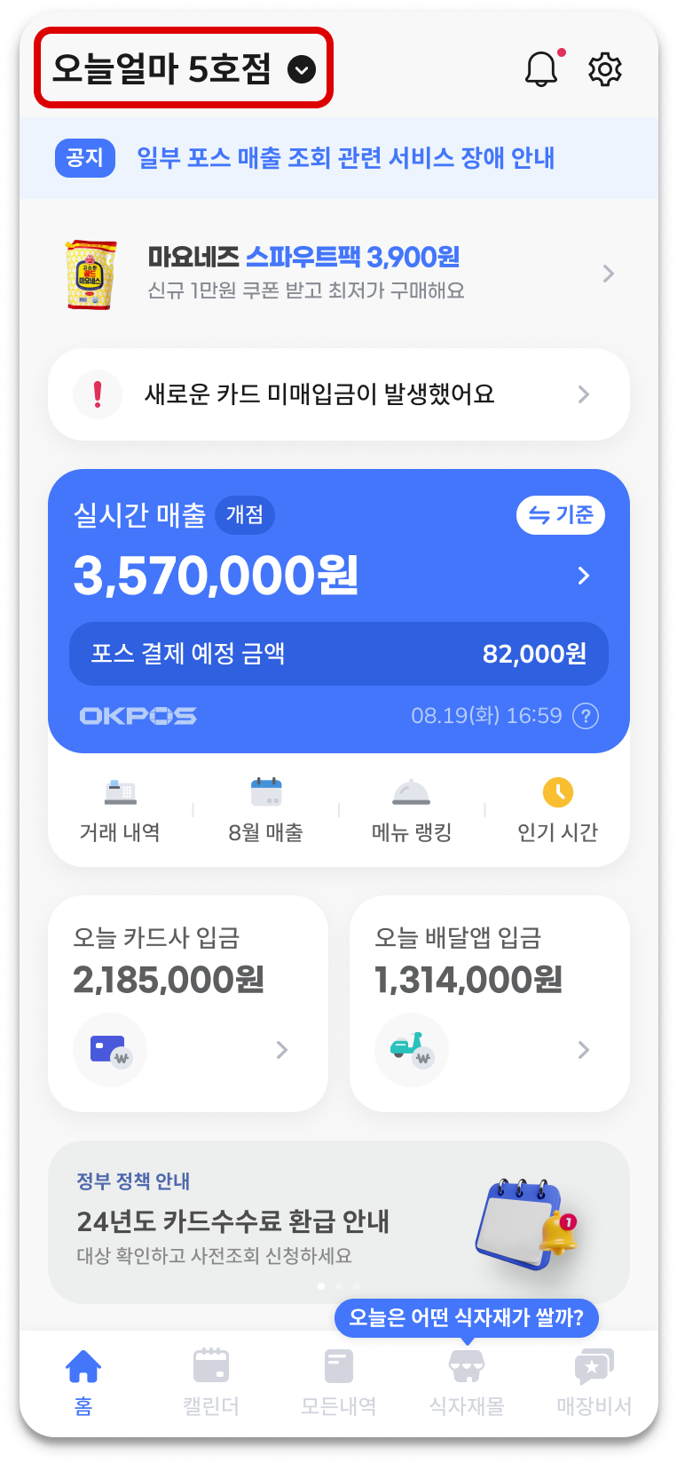 매장 추가가 완료되었다면 메인 상단에 추가된 매장을 확인할 수 있습니다.