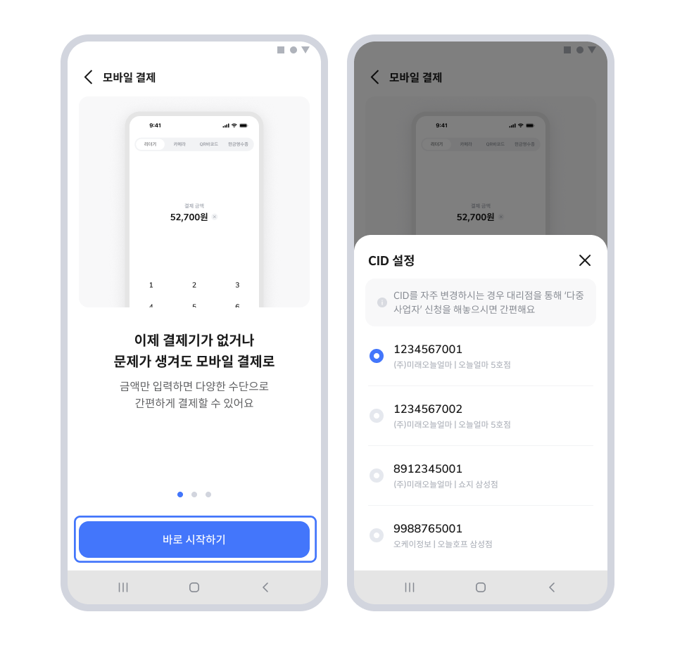 오늘얼마에서 처음 모바일 결제를 사용할 때 최초 1회 CID 설정을 거칩니다.