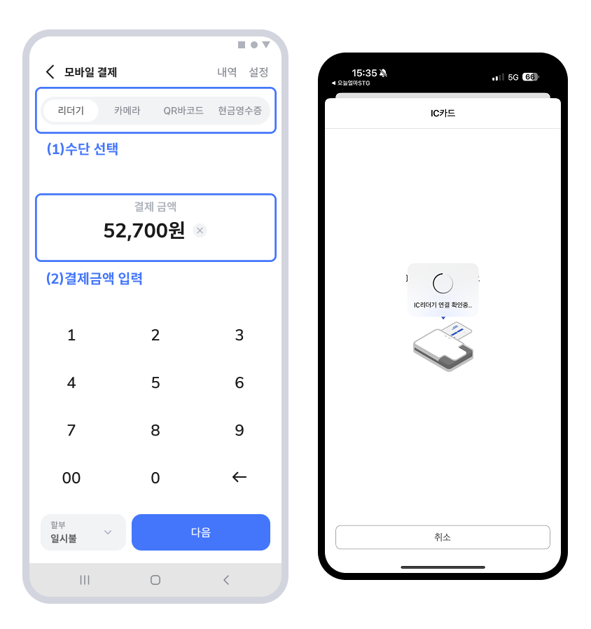 → 무선 리더기 결제를 원하는 경우에만 전용 단말기를 구입해 연결하신 후 사용하시면 됩니다.