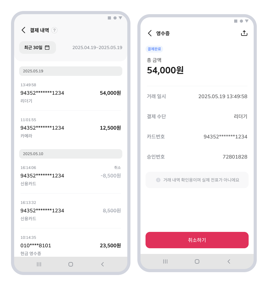 관련 거래법에 따라, 결제한 휴대폰 기기에서만 취소 처리가 가능합니다.