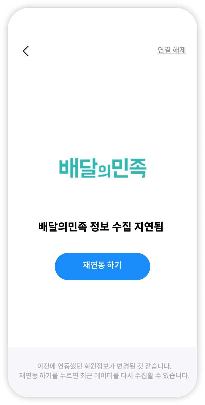 연동 시 입력했던 비밀번호 정보가 변경되면 데이터 수집이 실패합니다.