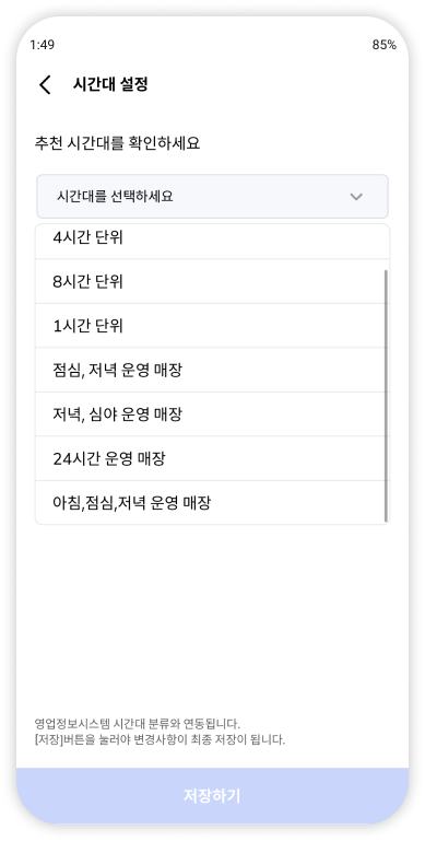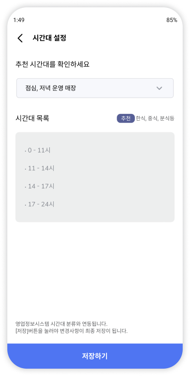 ex) 설정 예시 : 아침 6~10 / 점심 10~15 / 저녁 15~21 / 야간 21~6