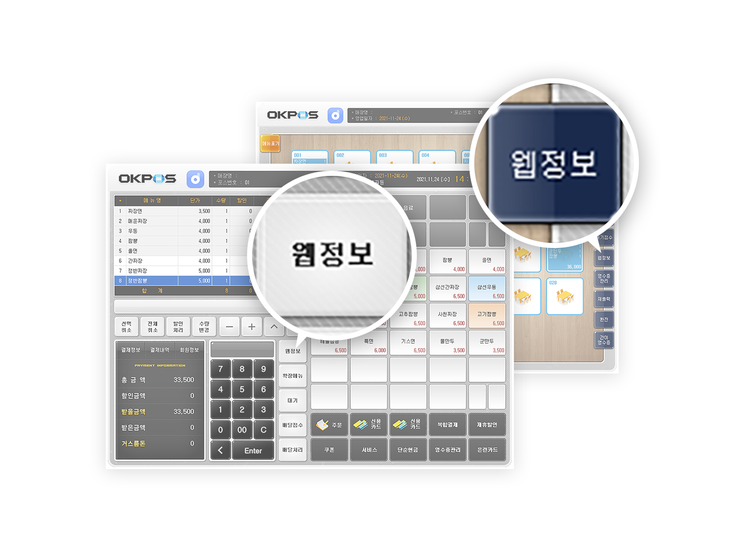 1) 포스기에서 화면에서 [웹정보]를 클릭해 영업정보시스템(ASP)으로 접속합니다.