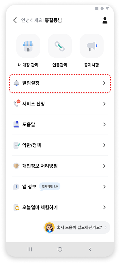 오늘알마 앱 푸시 알림 설정에 대해 안내해드립니다.