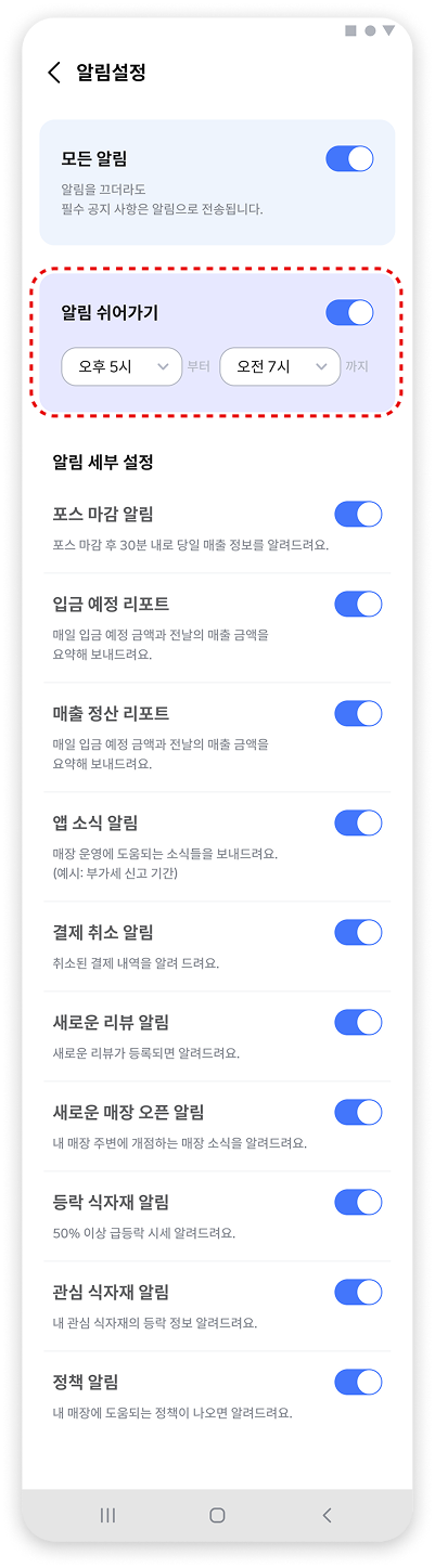 '알림 쉬어가기' 기능을 통해 원하는 시간대에만 알림과 리포트를 받을 수 있어요.